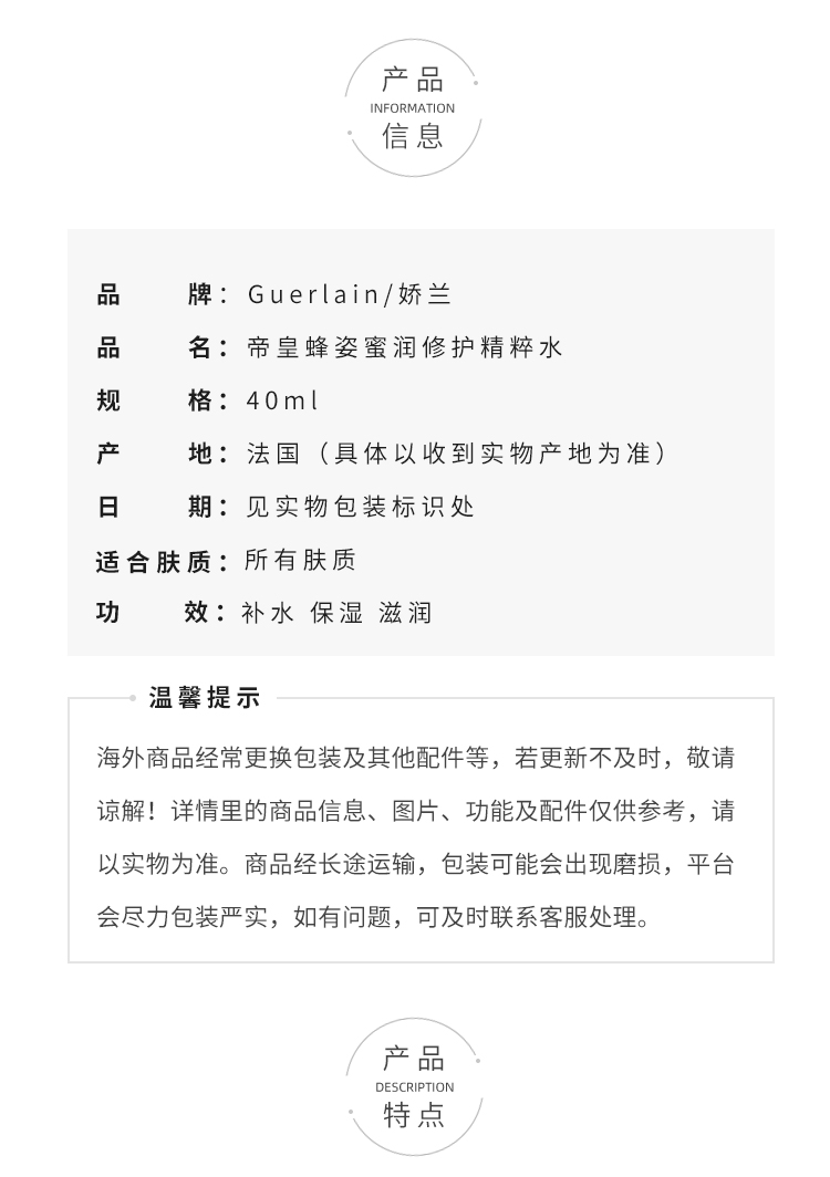 Guerlain/娇兰帝皇蜂姿蜜润修护精粹水补水滋润保湿-40ml