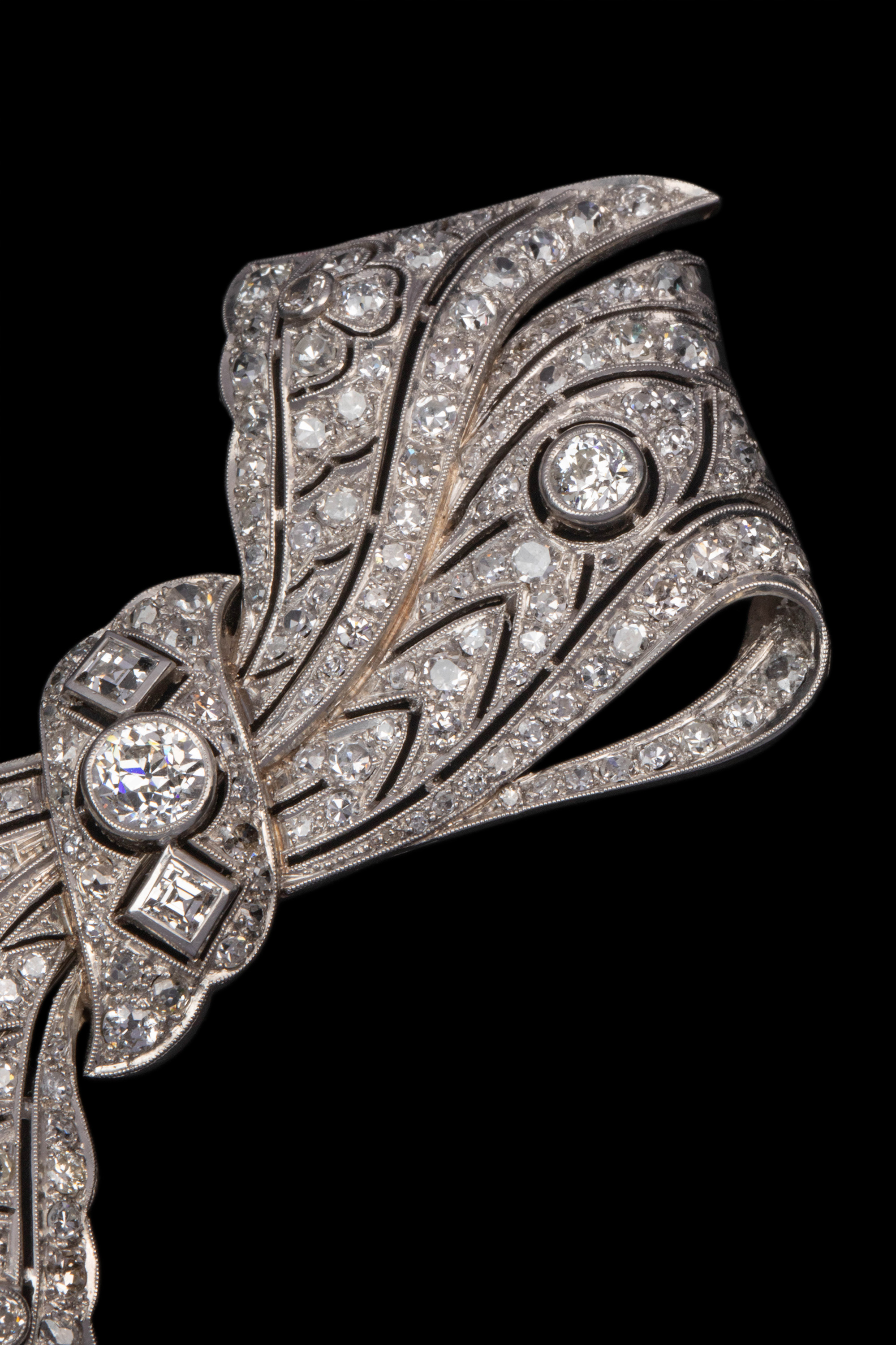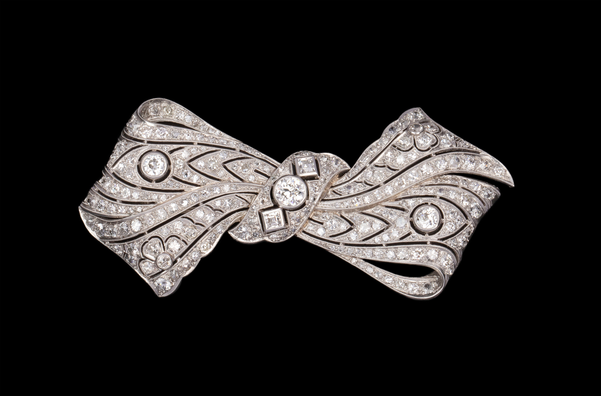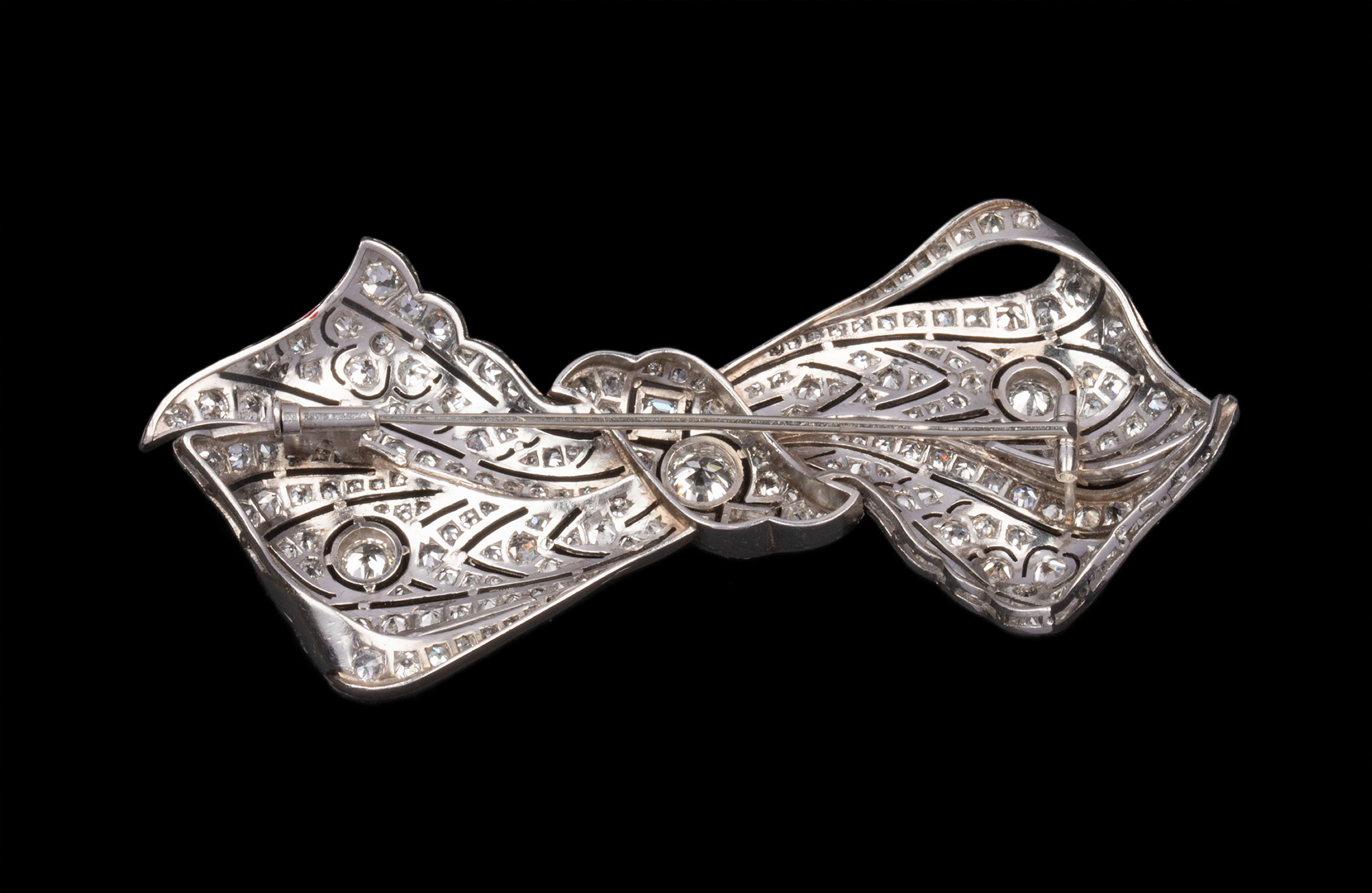 20世纪初欧洲出品装饰艺术风格蝴蝶结造型铂金镶嵌钻石胸针