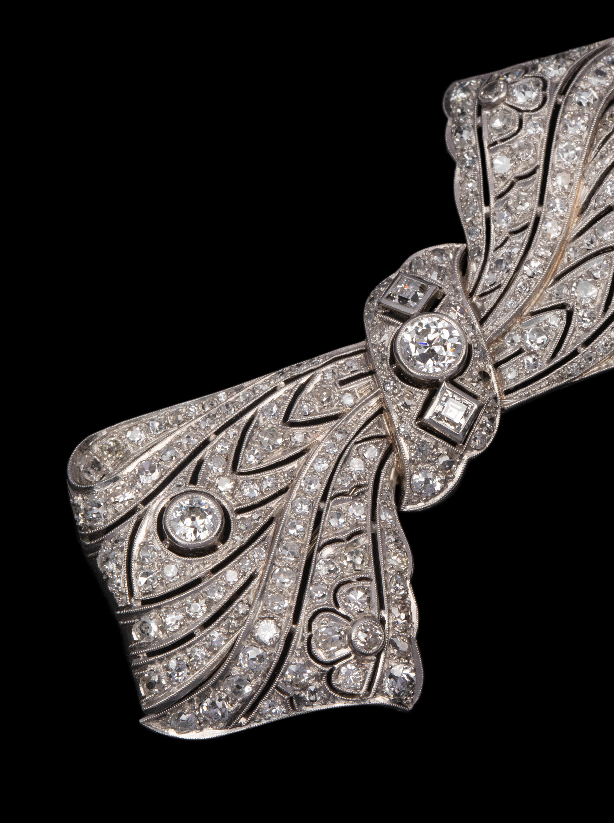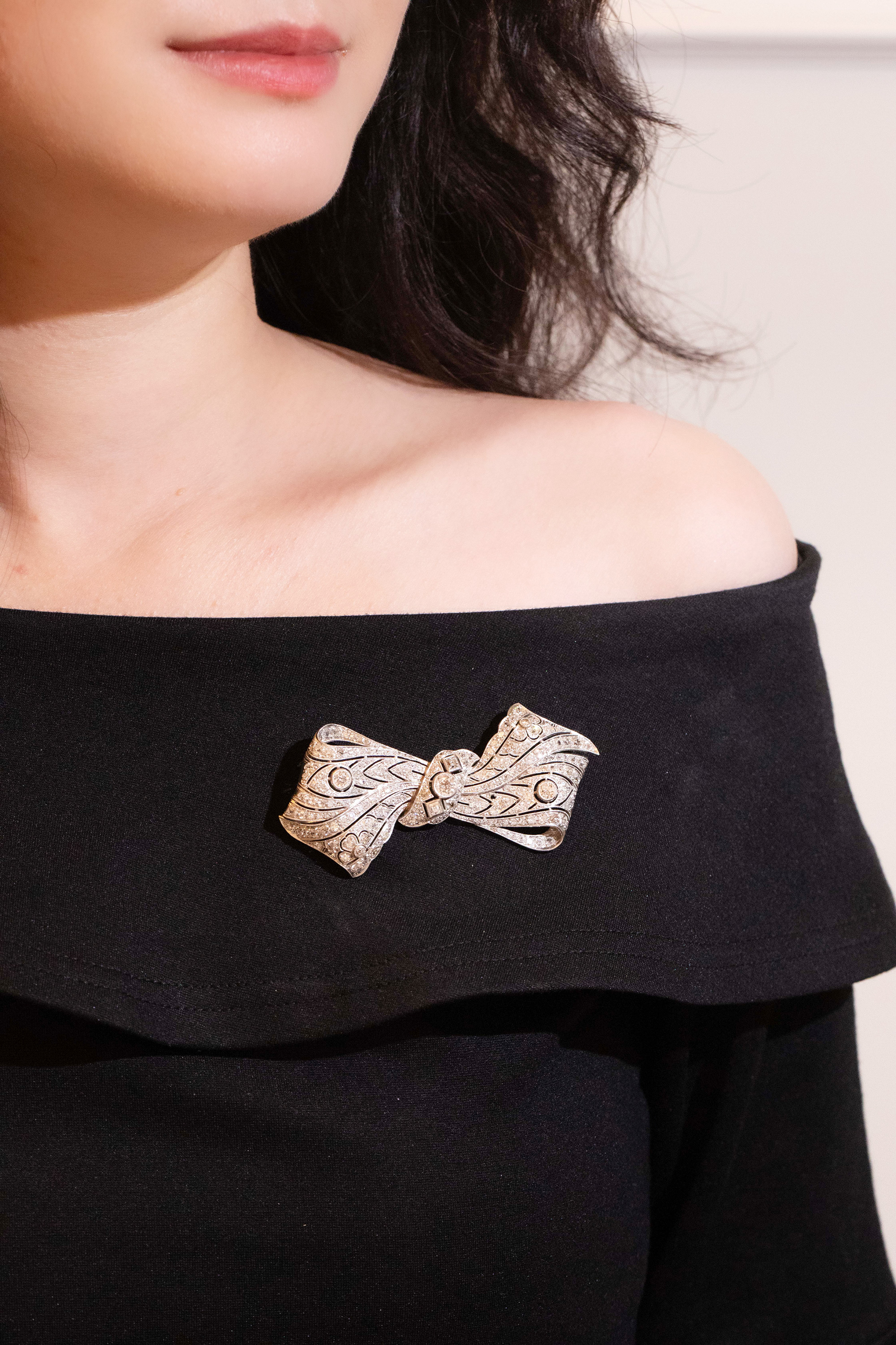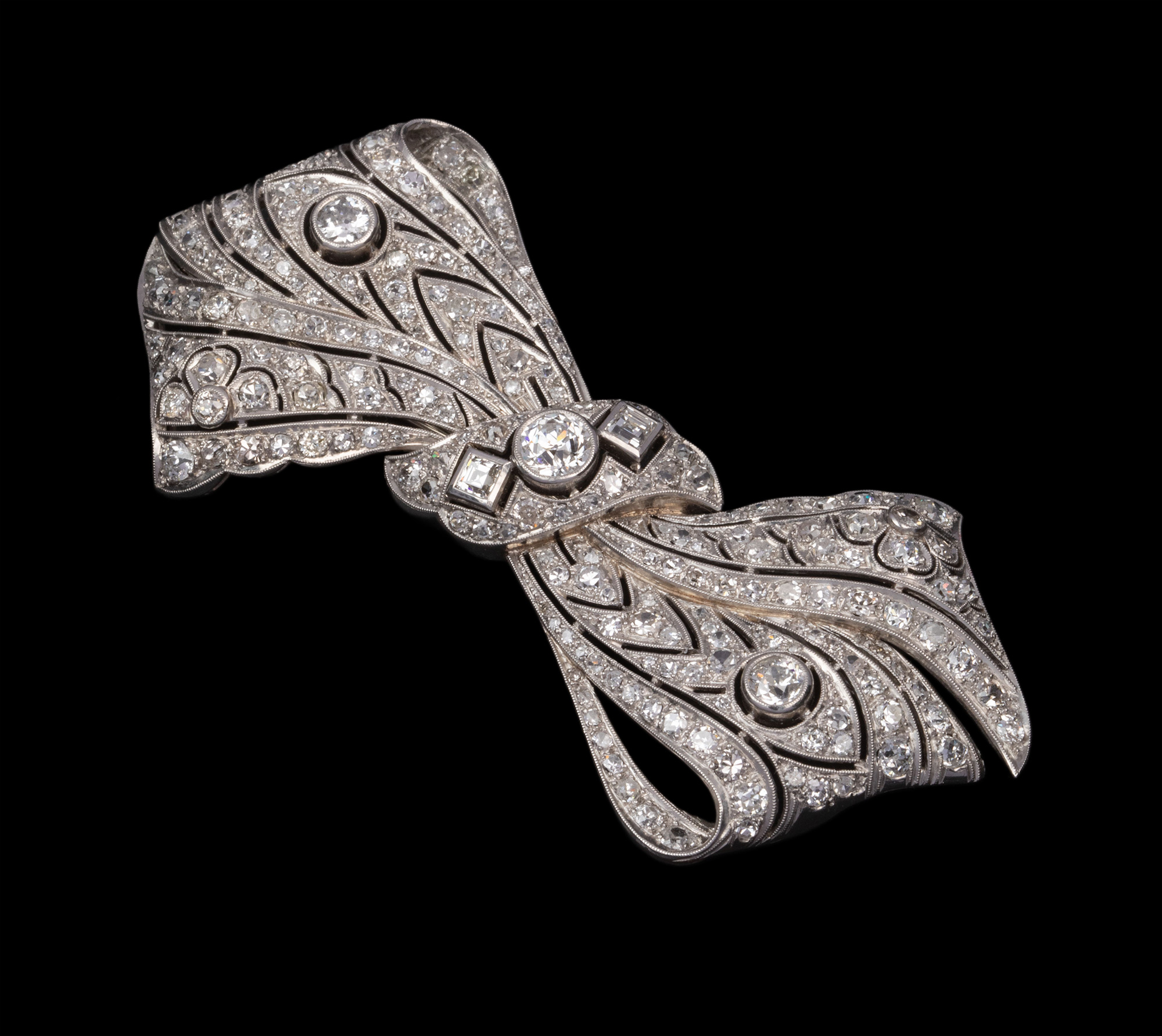 20世纪初欧洲出品装饰艺术风格蝴蝶结造型铂金镶嵌钻石胸针