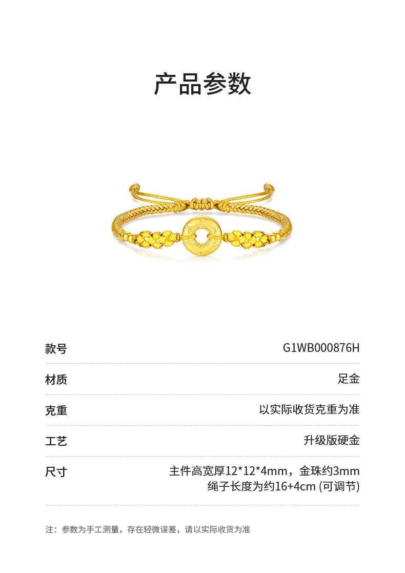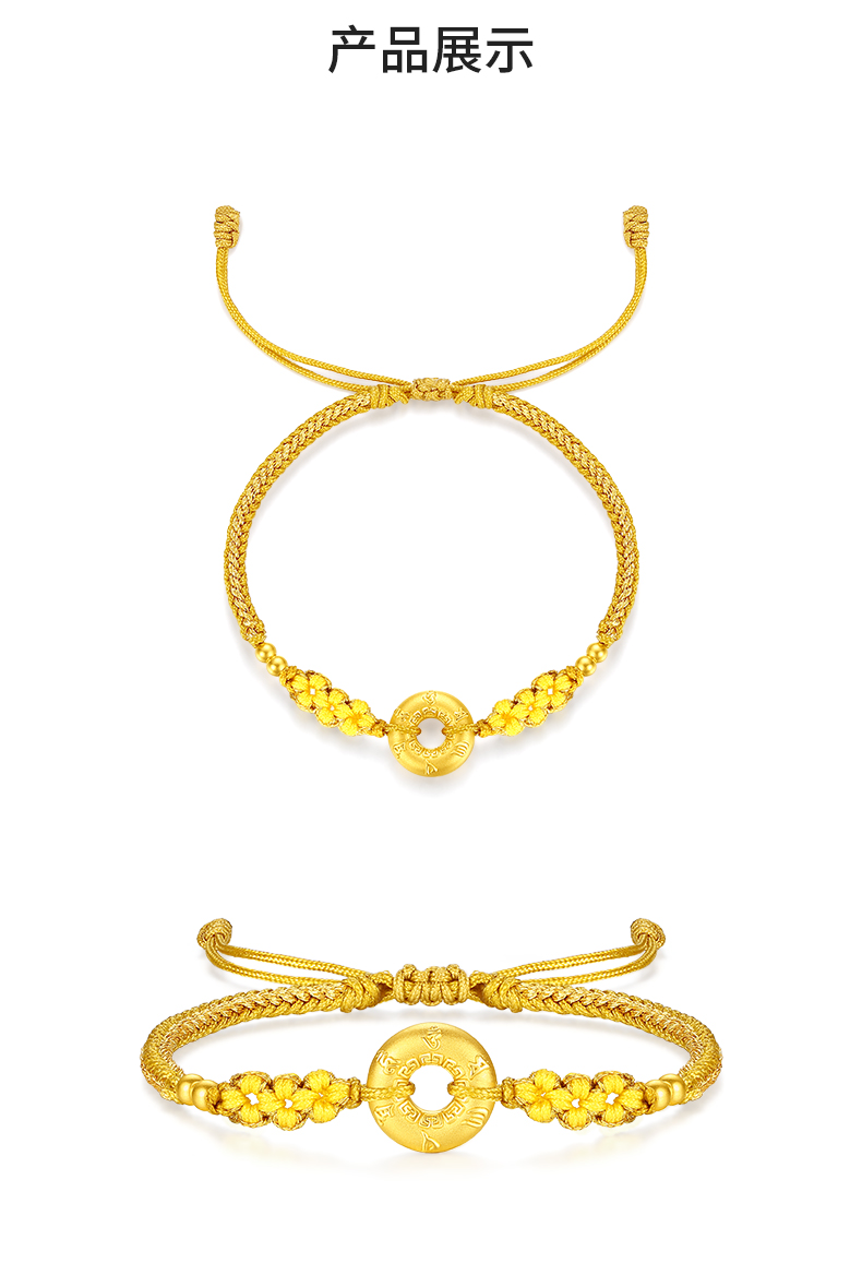 周大生黄金平安扣手链女款足金硬金平安顺遂手链七夕送女朋友礼物