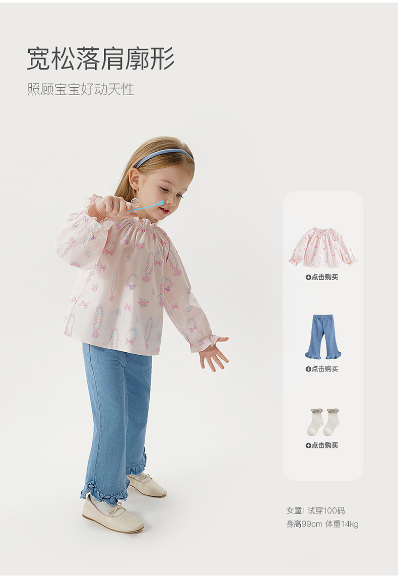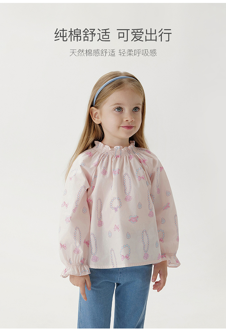 马克珍妮女童甜美花边领衬衫 宝宝纯棉衬衣2025年春装新款250239