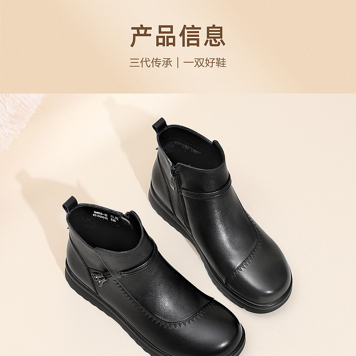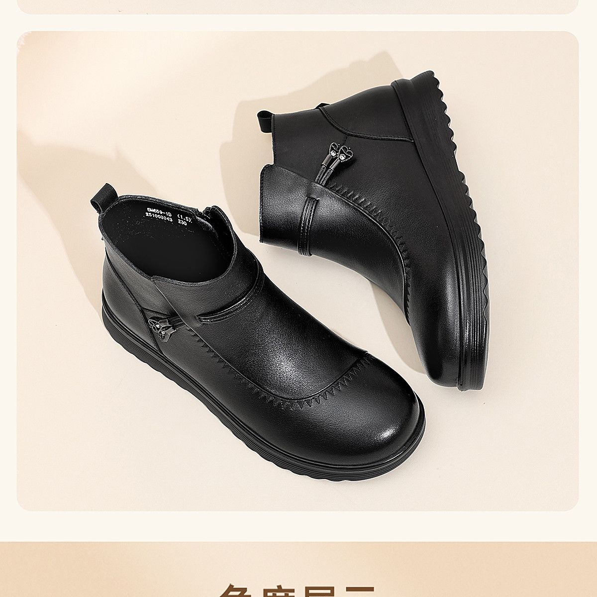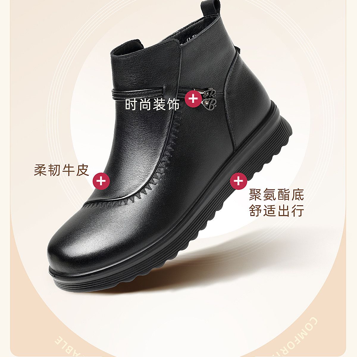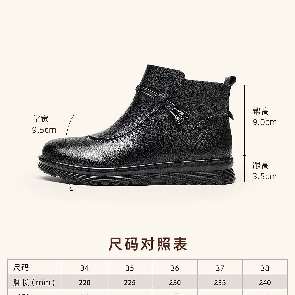 信诺妈妈鞋女加绒保暖高帮棉鞋2025冬季新款软底舒适休闲真皮短靴5M659-1D