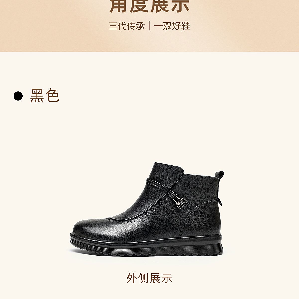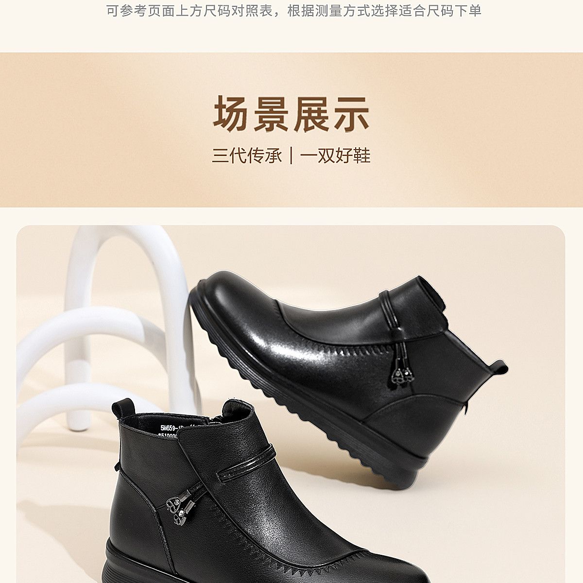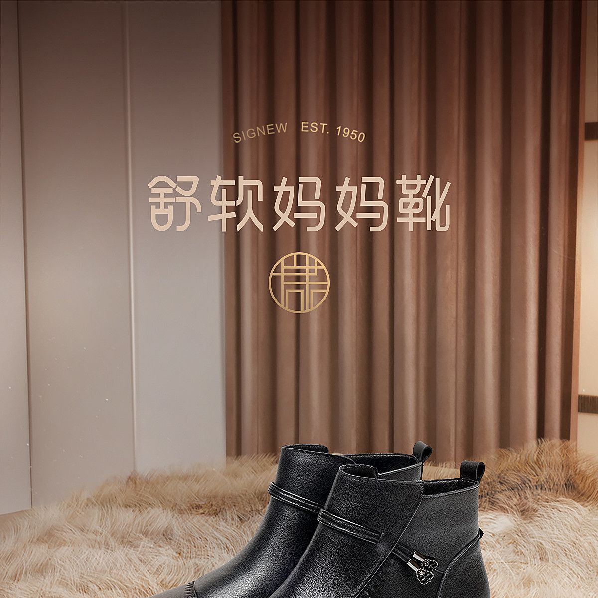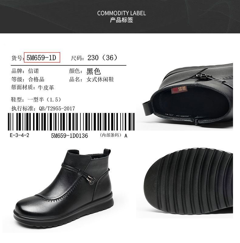 信诺妈妈鞋女加绒保暖高帮棉鞋2025冬季新款软底舒适休闲真皮短靴5M659-1D