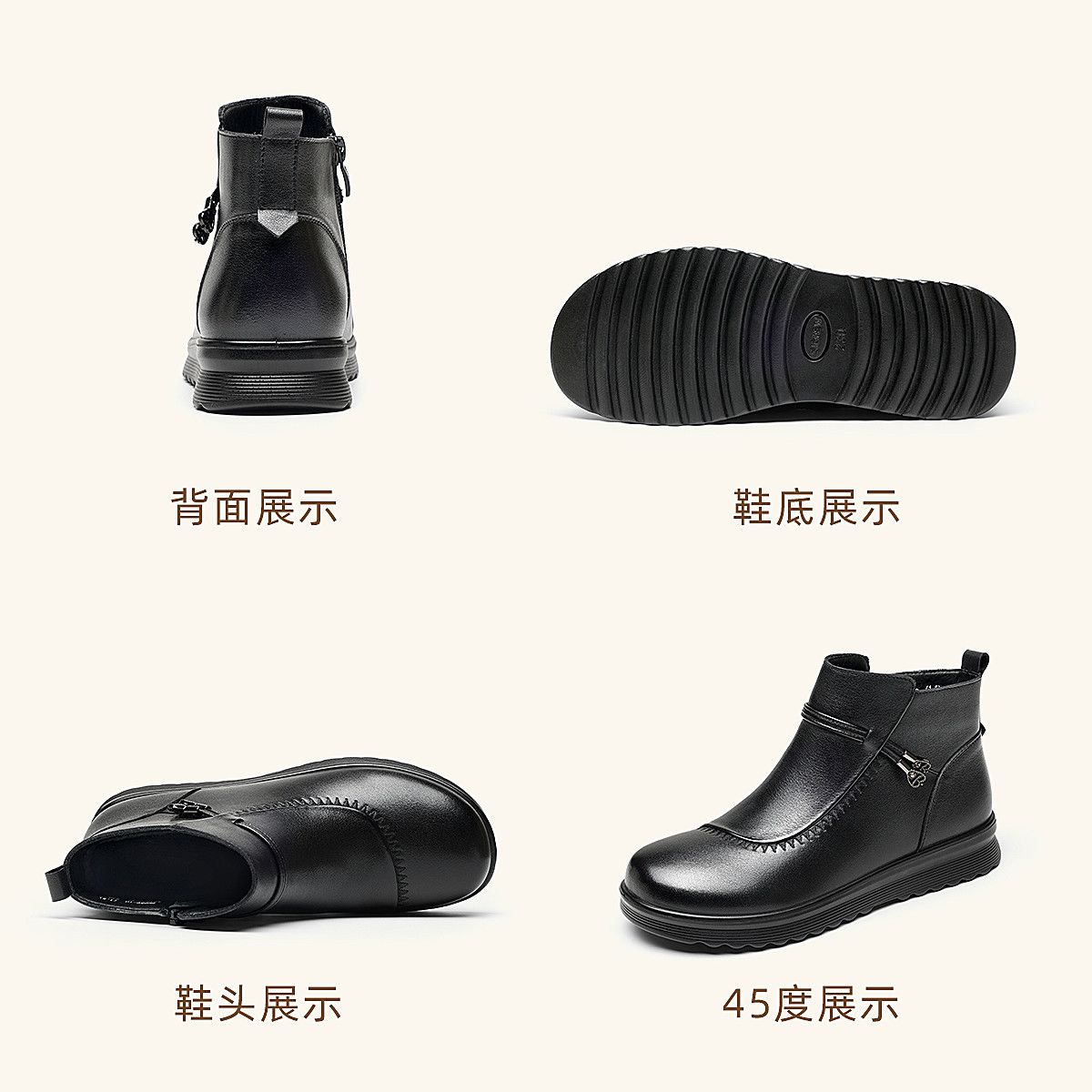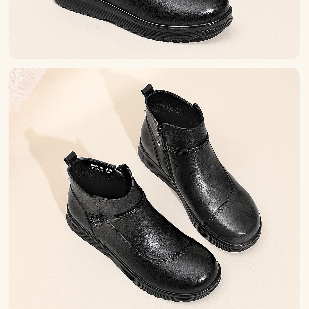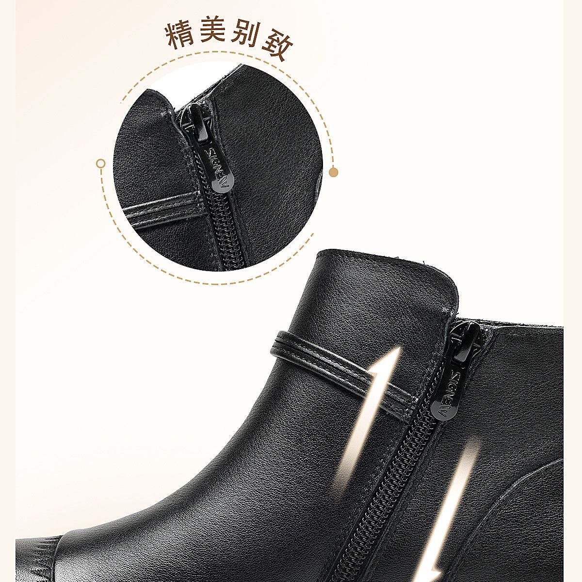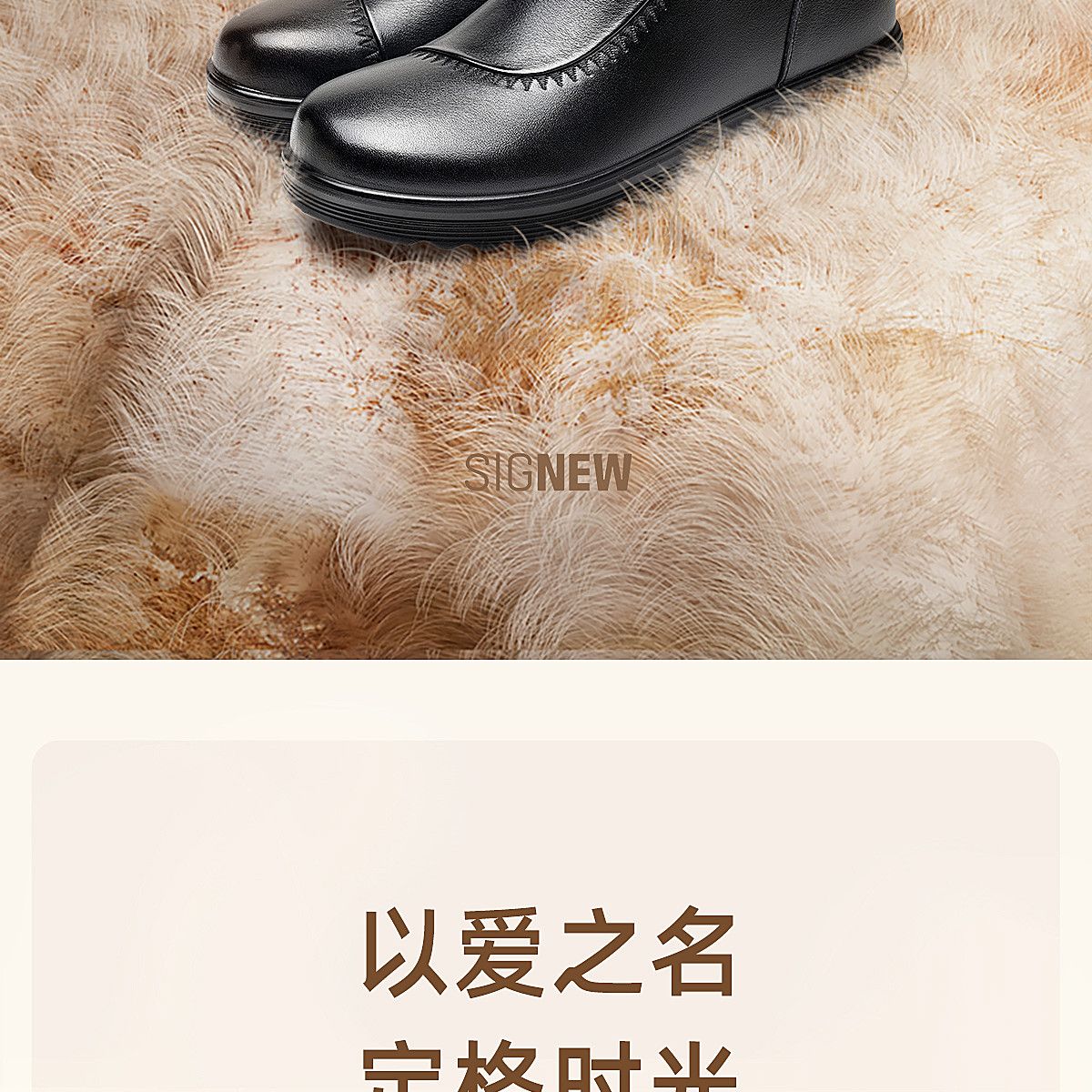 信诺妈妈鞋女加绒保暖高帮棉鞋2025冬季新款软底舒适休闲真皮短靴5M659-1D