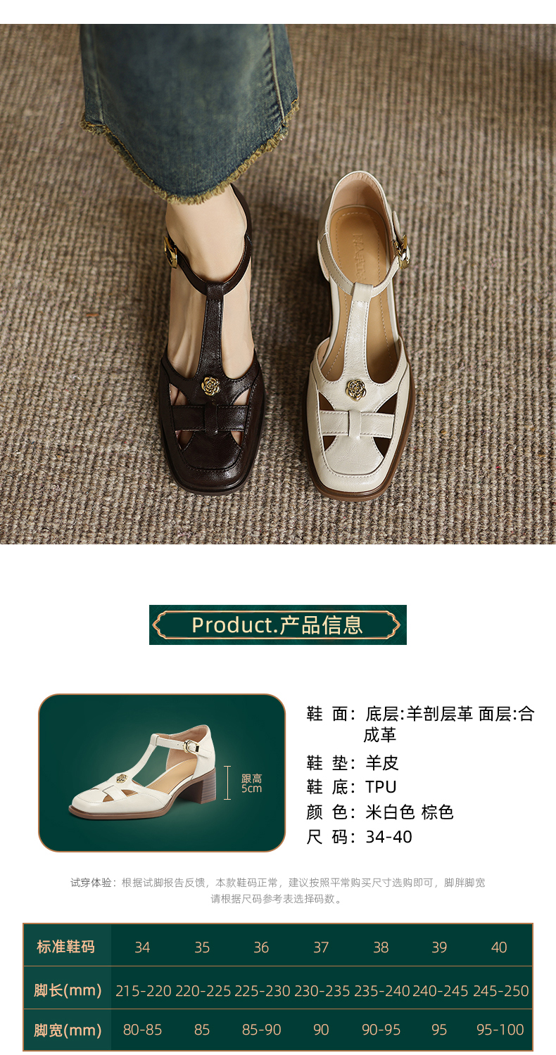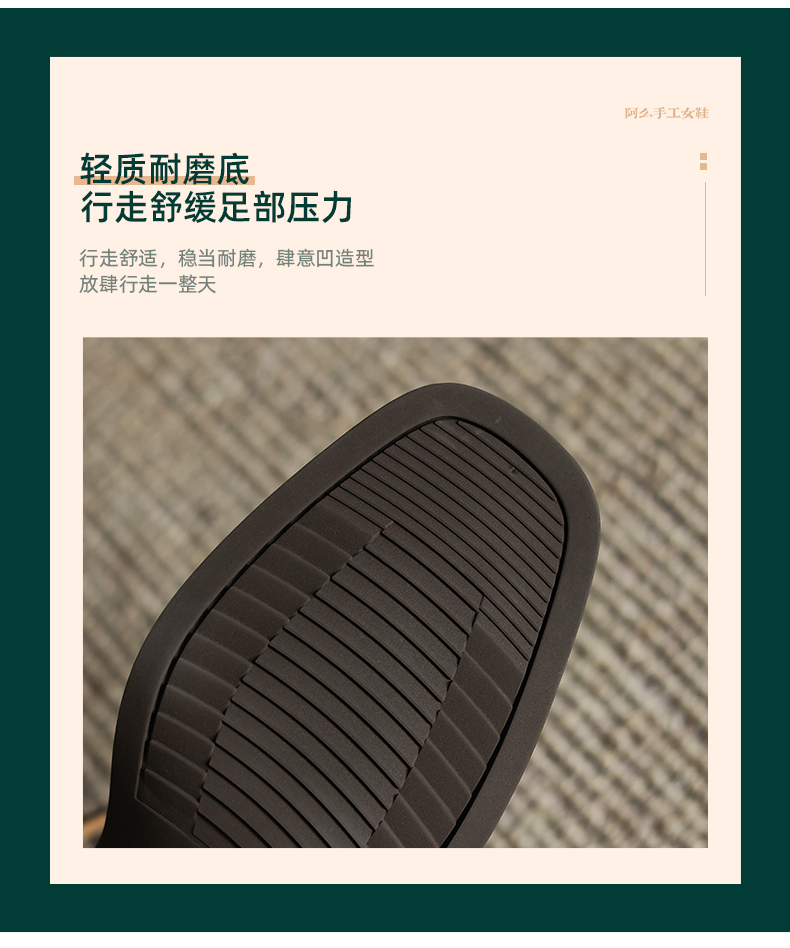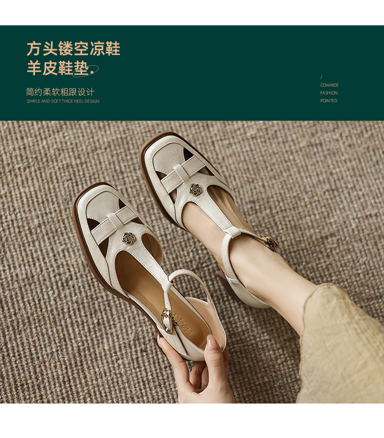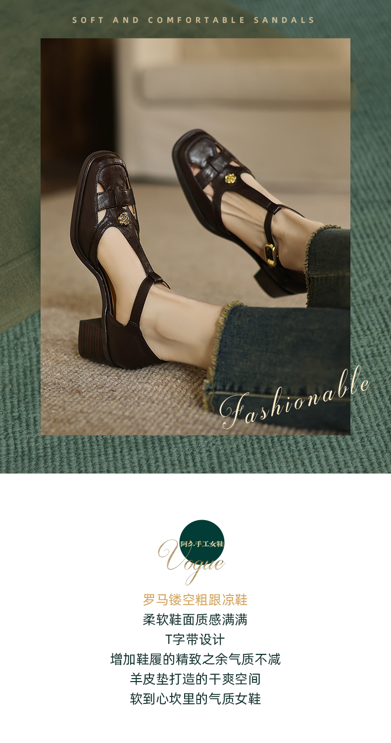 阿么手工女鞋包头粗跟凉鞋女夏外穿软底软面真皮镂空罗马鞋子5CM