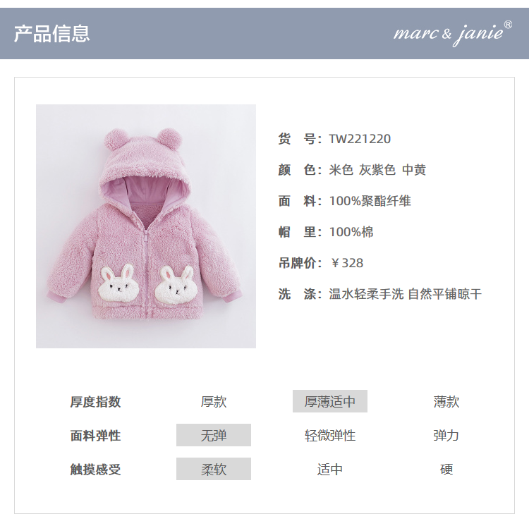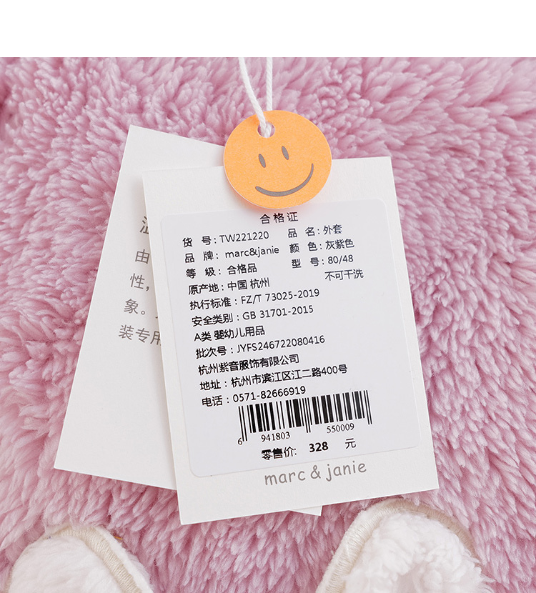 马克珍妮秋装新款 女童动物口袋双面舒棉绒棉衣外套221220