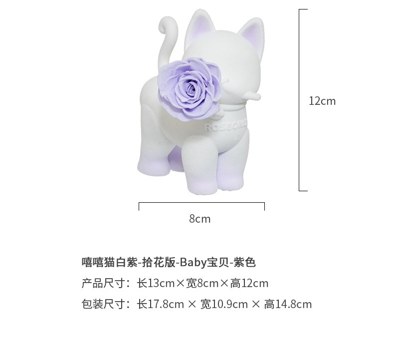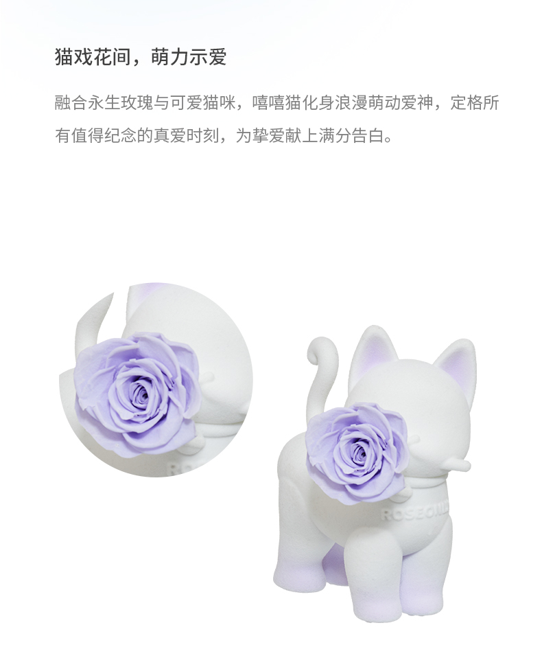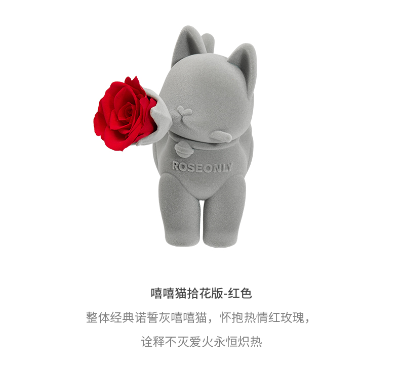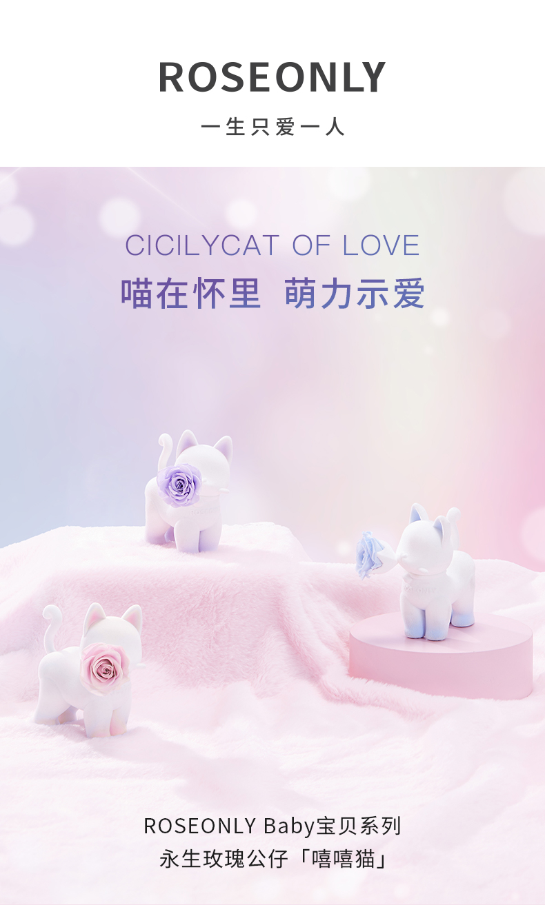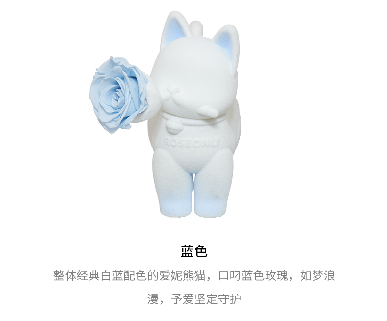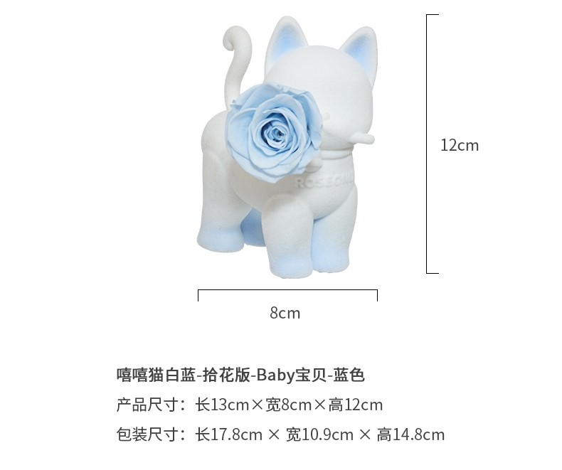 ROSEONLY诺誓 永生玫瑰 公仔系列 嘻嘻猫白蓝拾花版 Baby宝贝系列 送朋友 情人节礼物