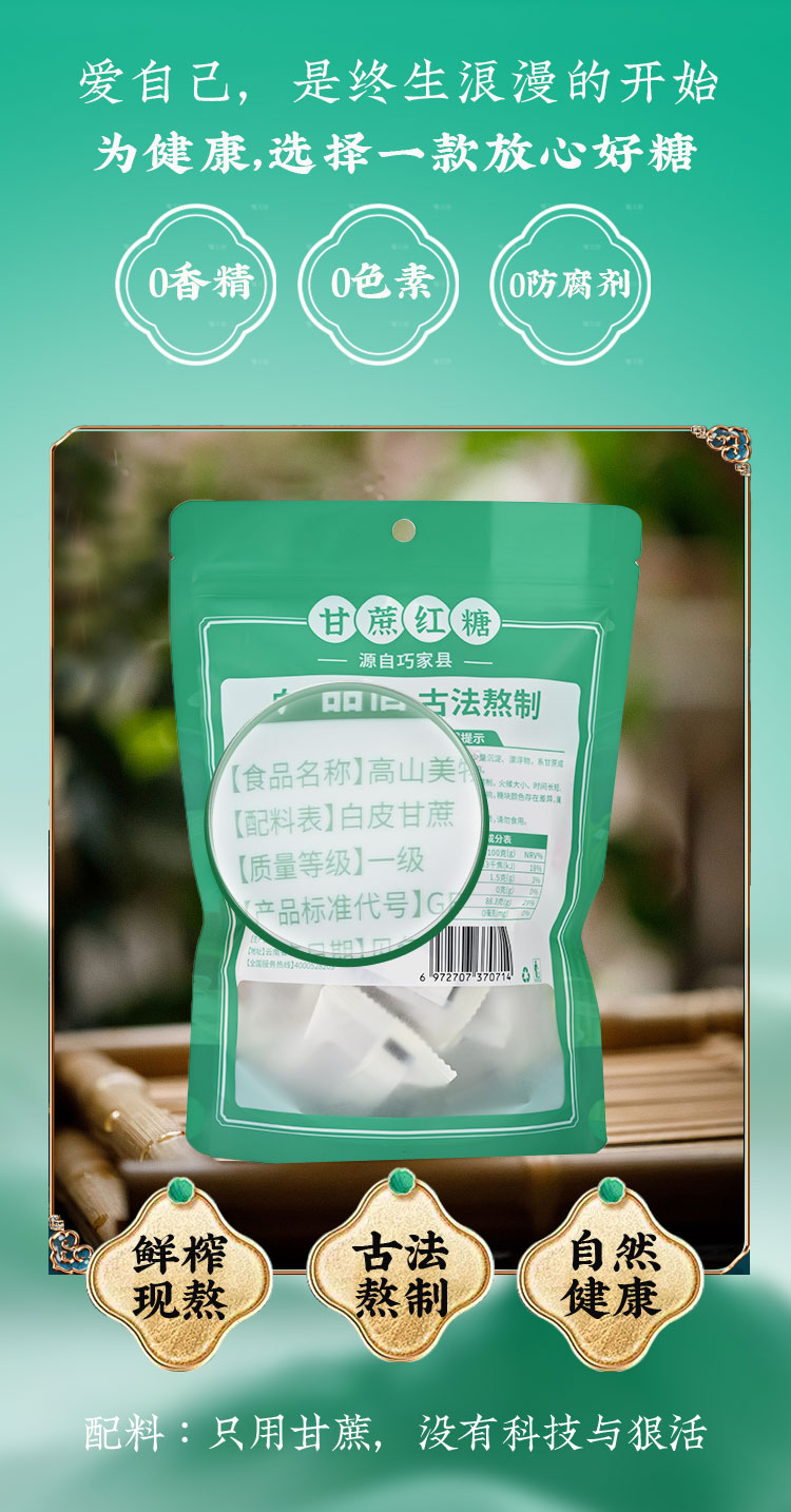 【甘蔗红糖】精选巧家县金沙江畔优质白皮甘蔗 古法工艺 柴火慢熬 手工翻砂 自然天成无添加AA