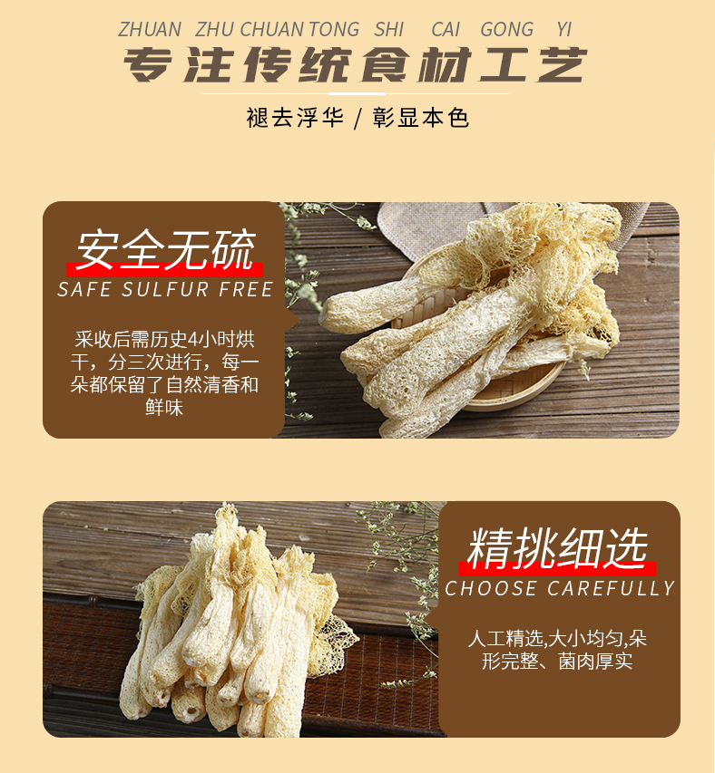 【菌中皇后❗️鲜珥家竹荪】肉质饱满,稚嫩爽脆,袋装干竹荪特产新鲜竹荪干货,袋装竹笙无熏硫产地泡发健康L-d