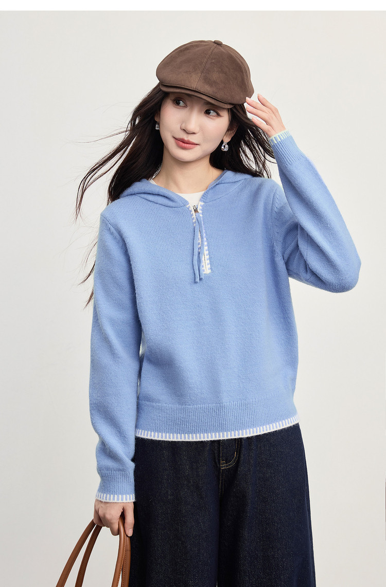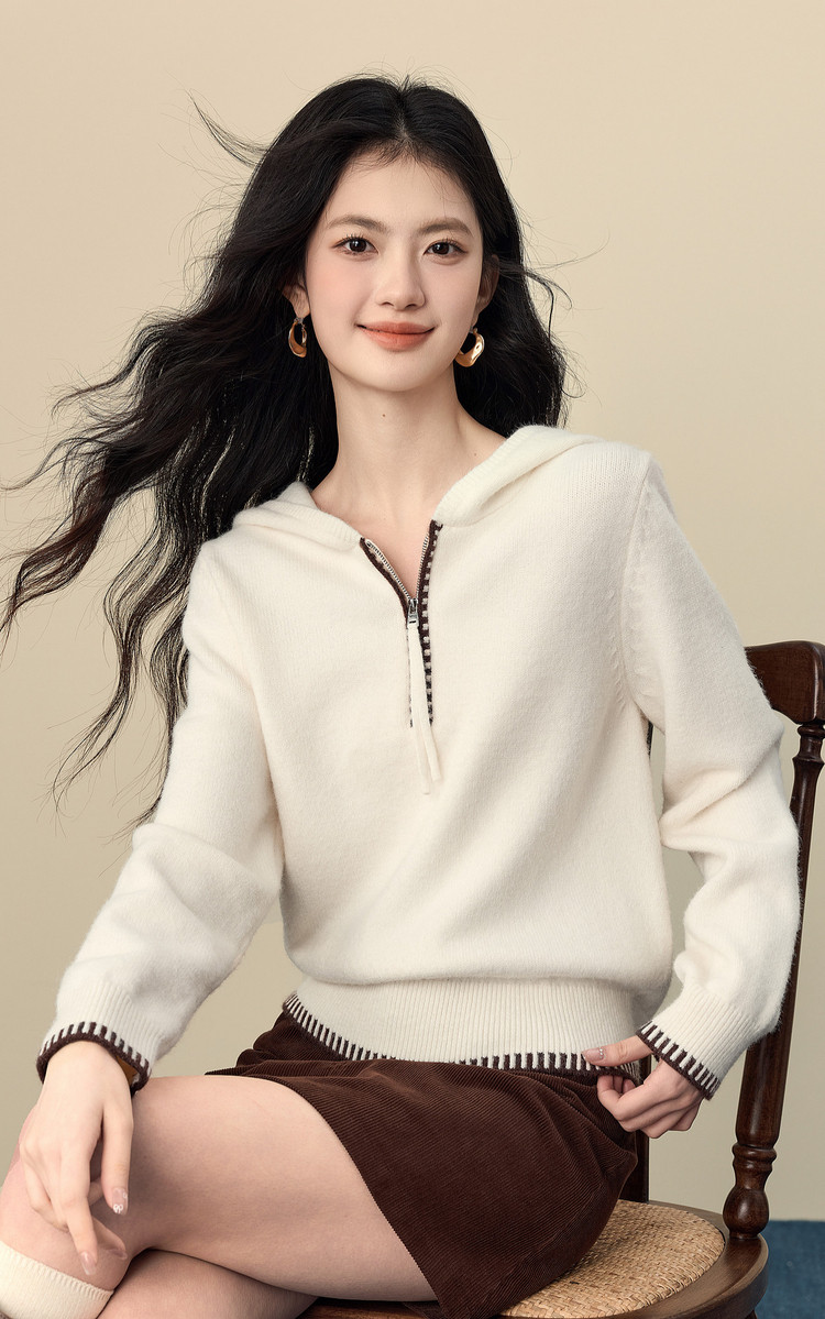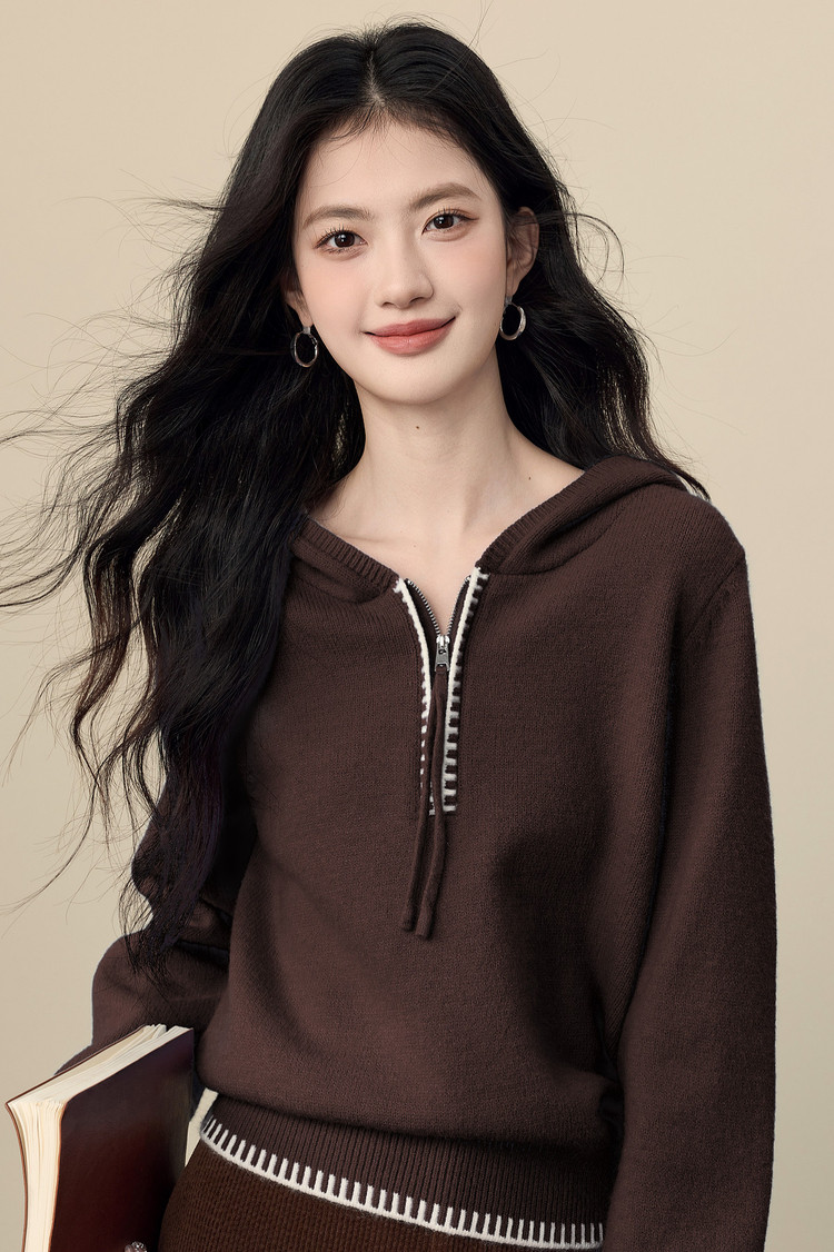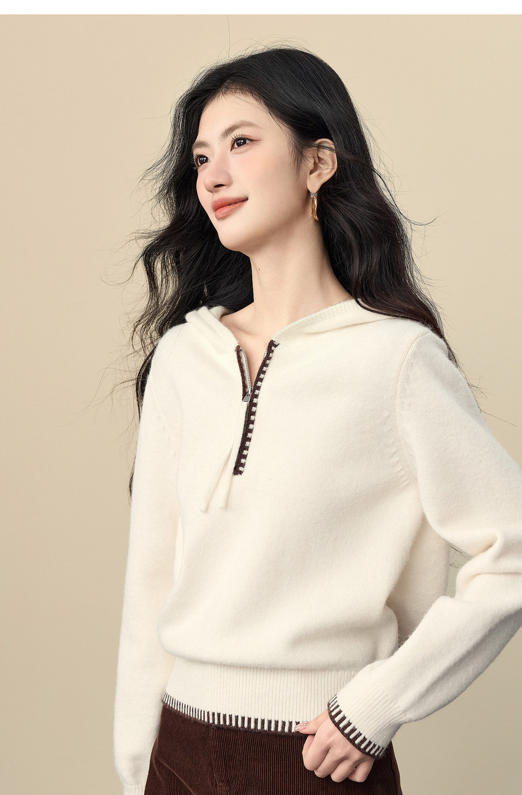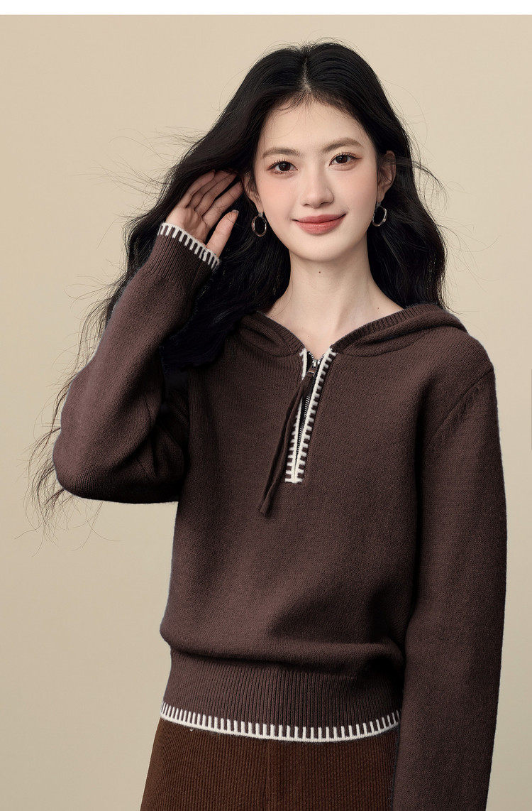 【年终特价】熙世界北极绒连帽毛衣女2025秋冬新款宽松休闲半开襟拉链针织帽衫