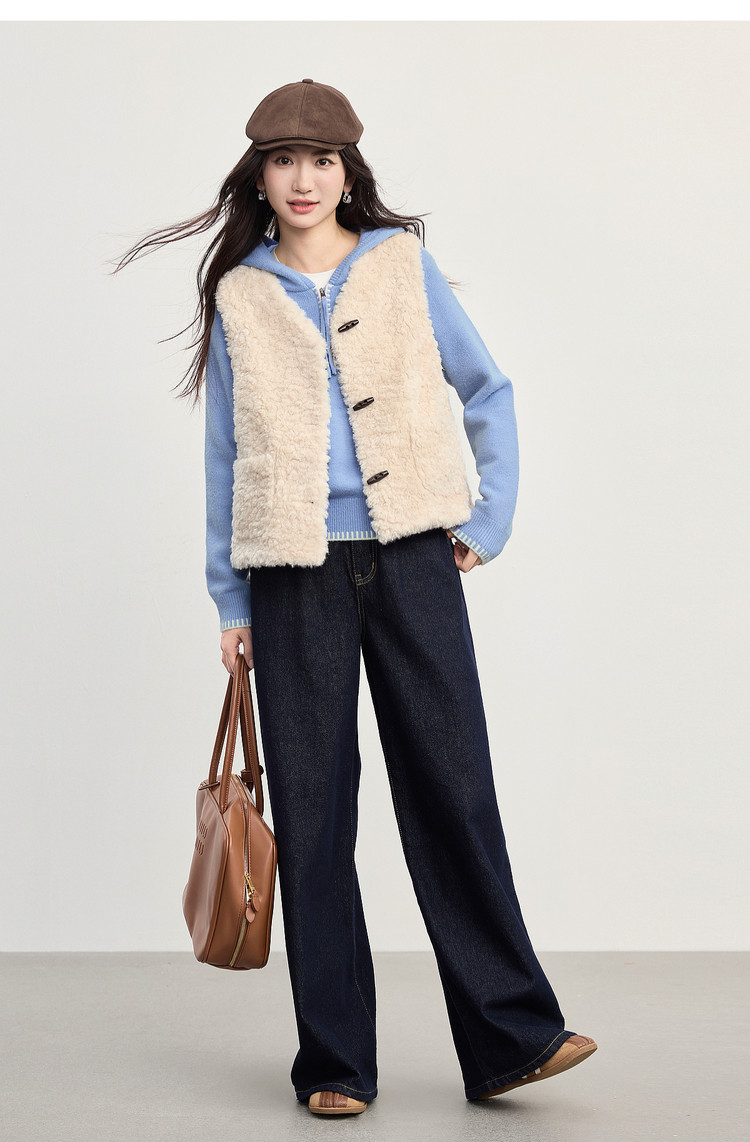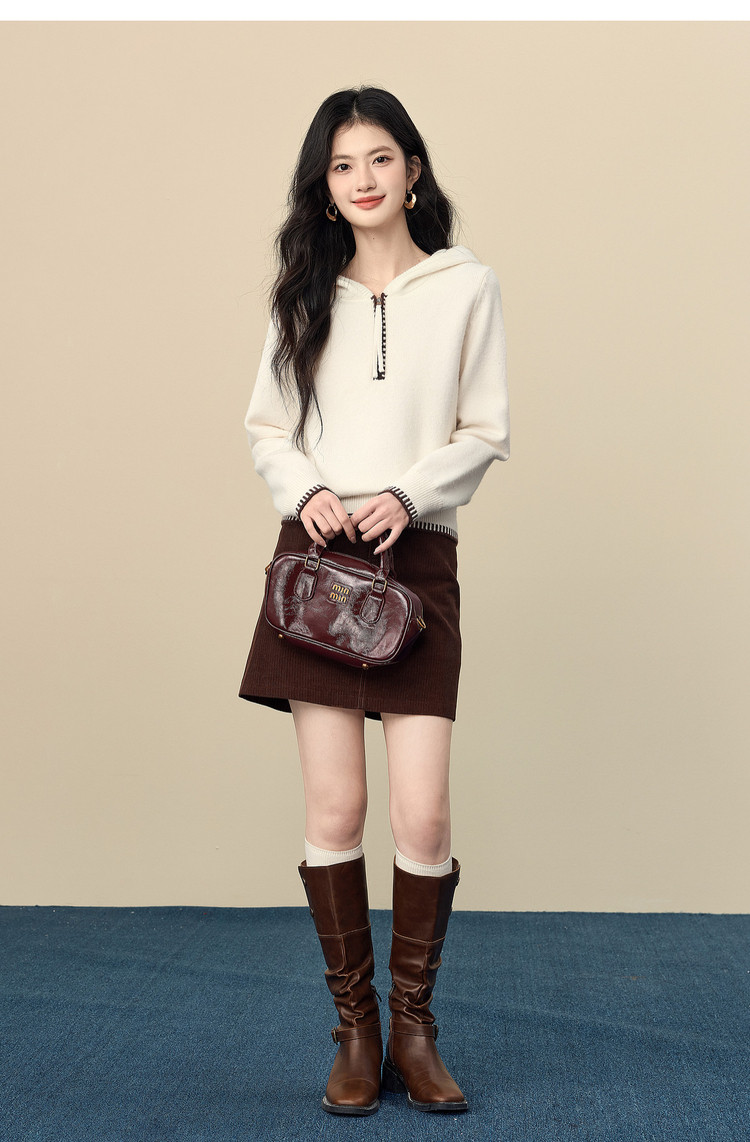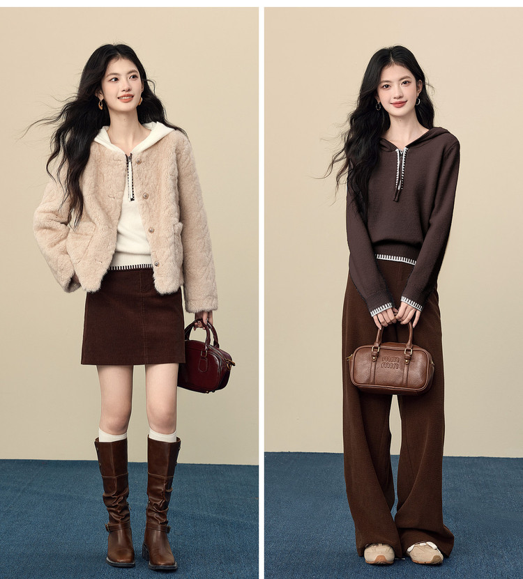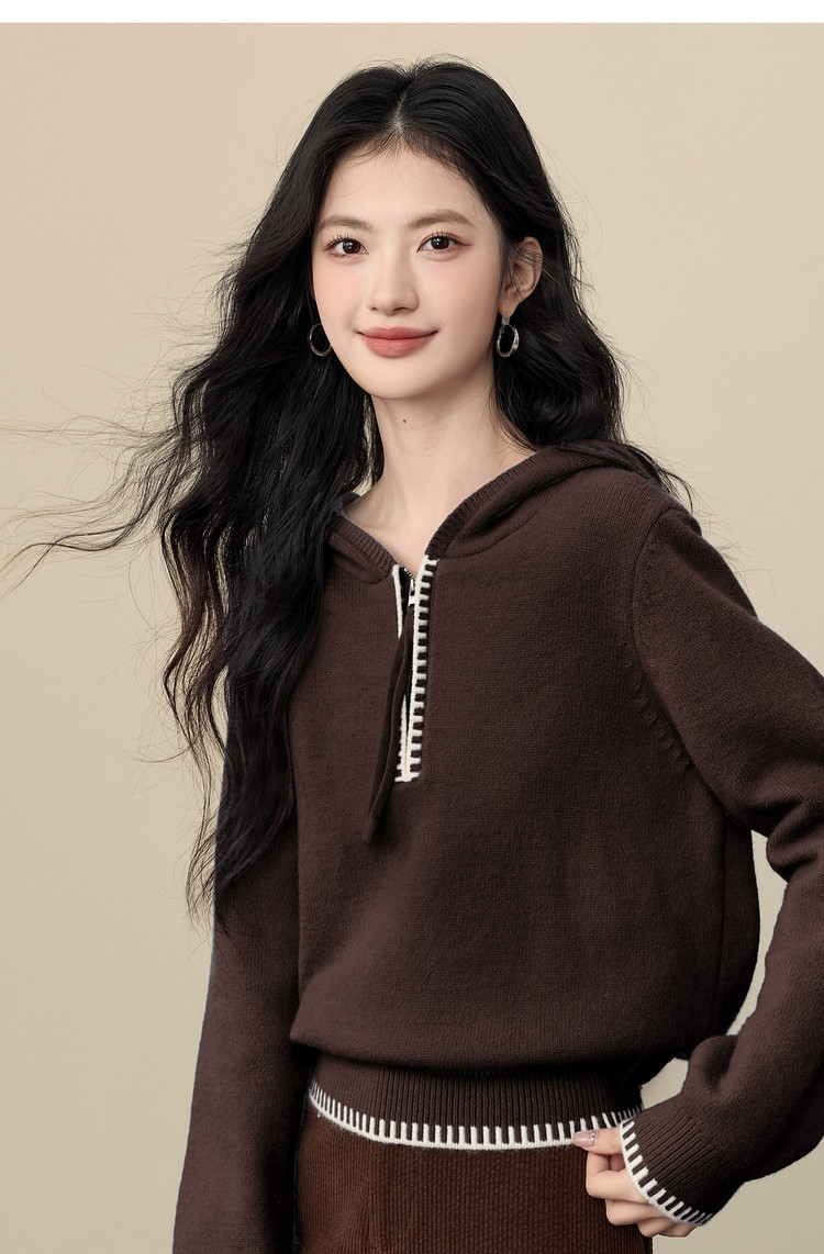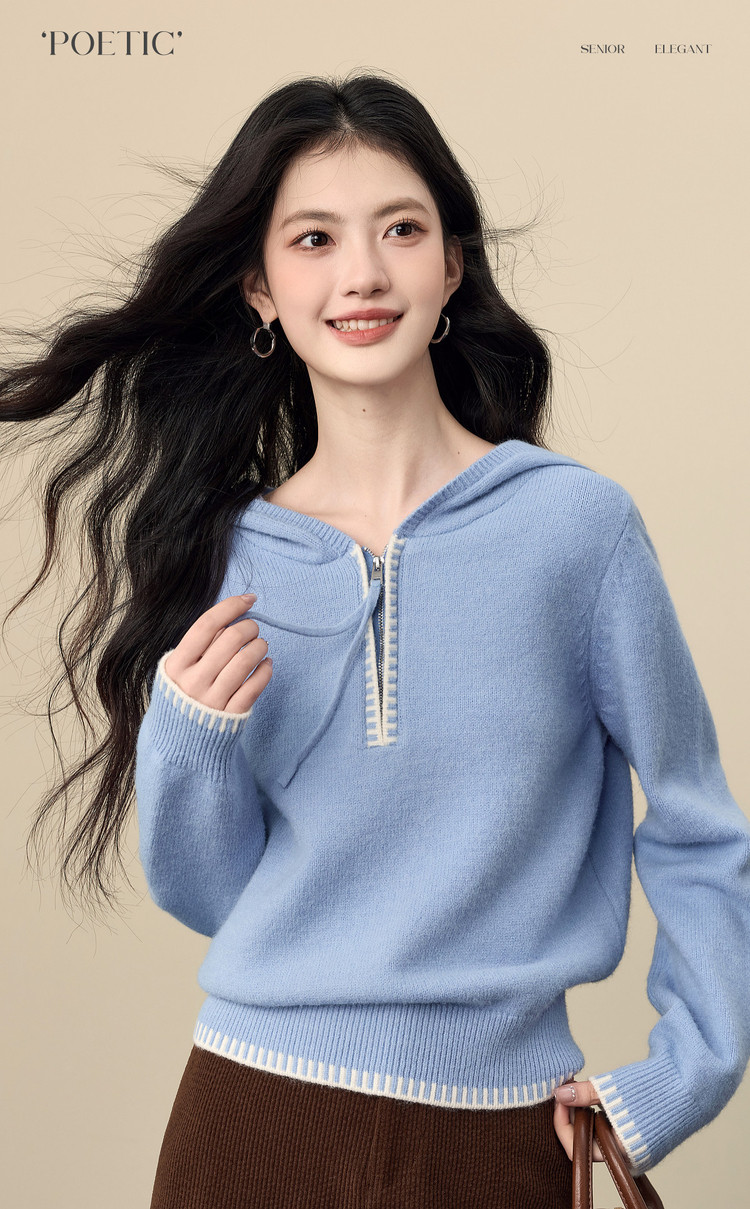 【年终特价】熙世界北极绒连帽毛衣女2025秋冬新款宽松休闲半开襟拉链针织帽衫