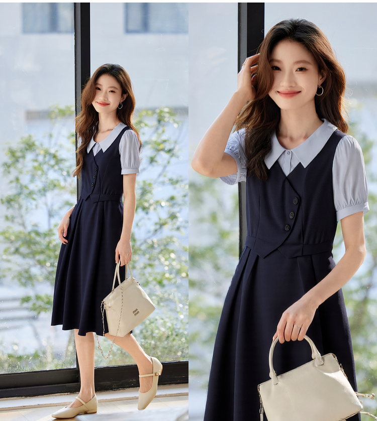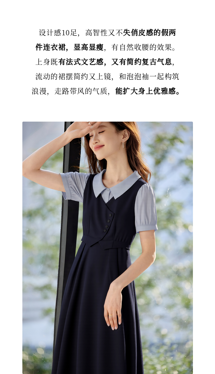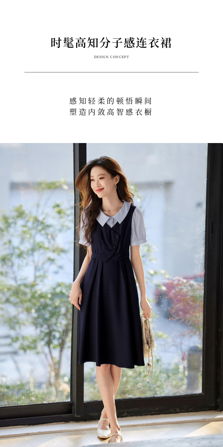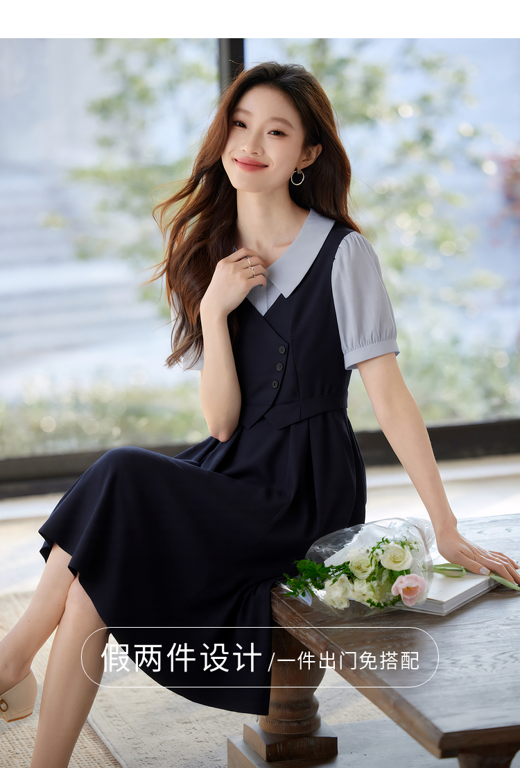 熙世界知识分子学院风假两件连衣裙女夏2025新款短袖面试通勤裙子