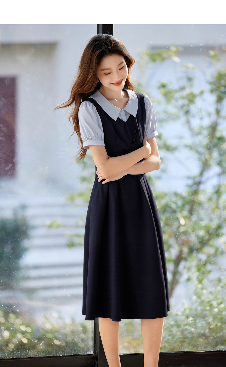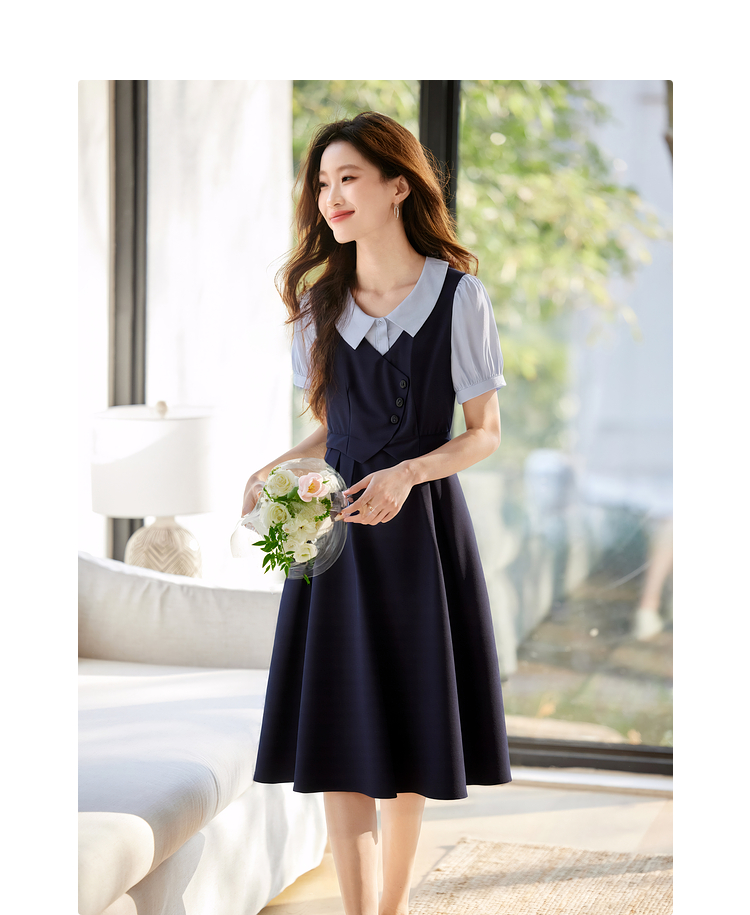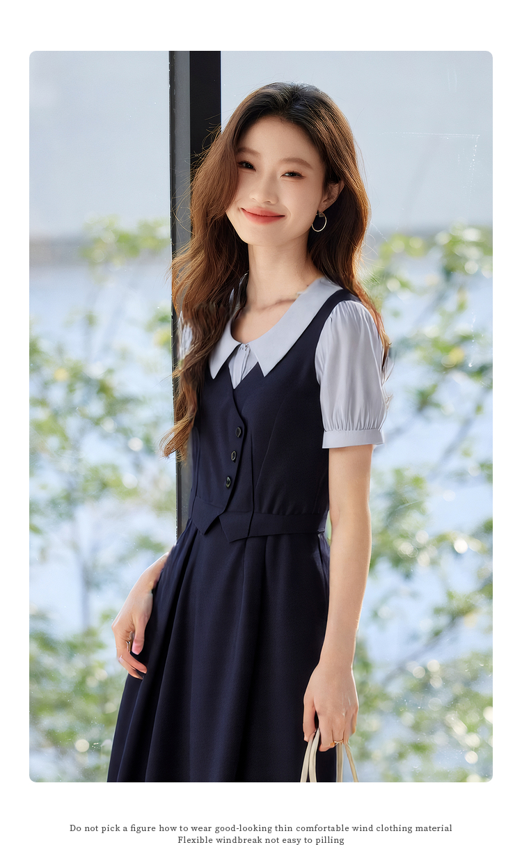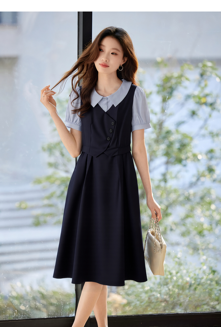 熙世界知识分子学院风假两件连衣裙女夏2025新款短袖面试通勤裙子