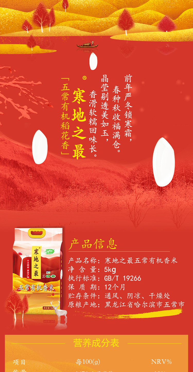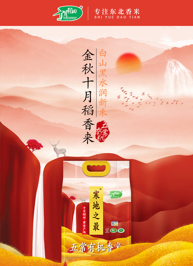 十月稻田 寒地之最 五常有机稻花香米 东北大米5kg 当季新米