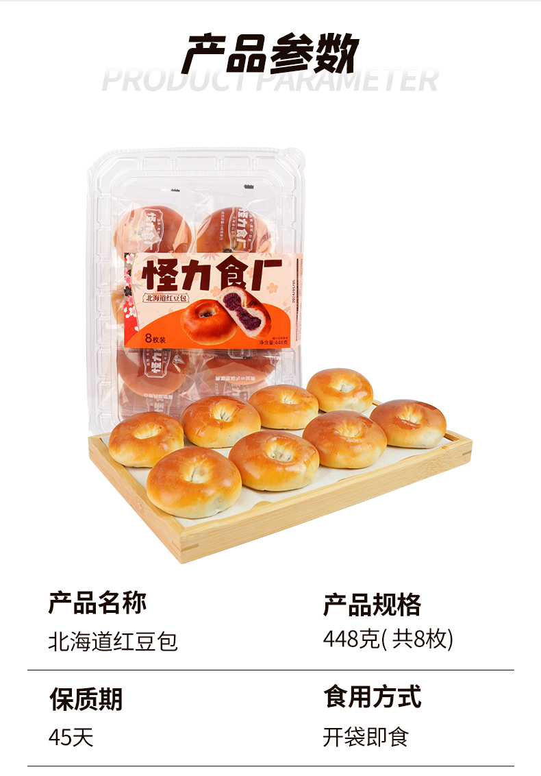 怪力食厂 北海道红豆包448g/盒