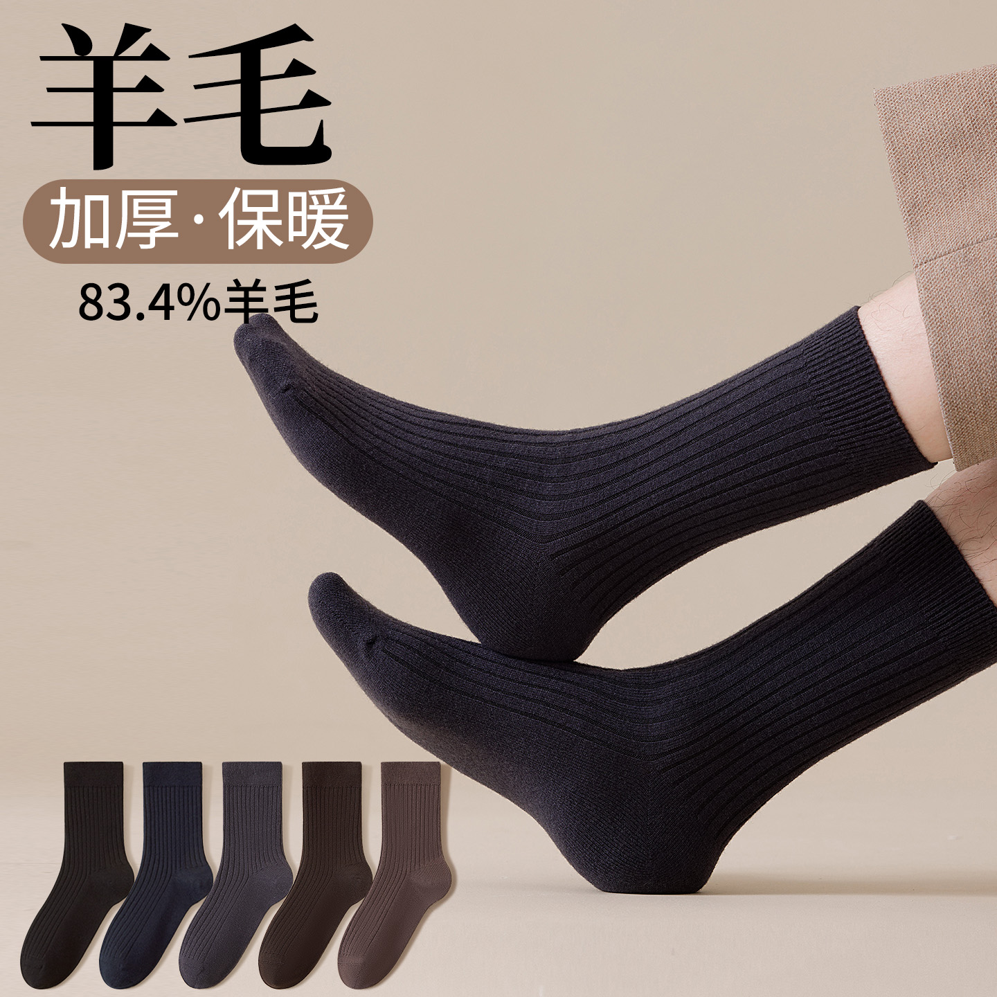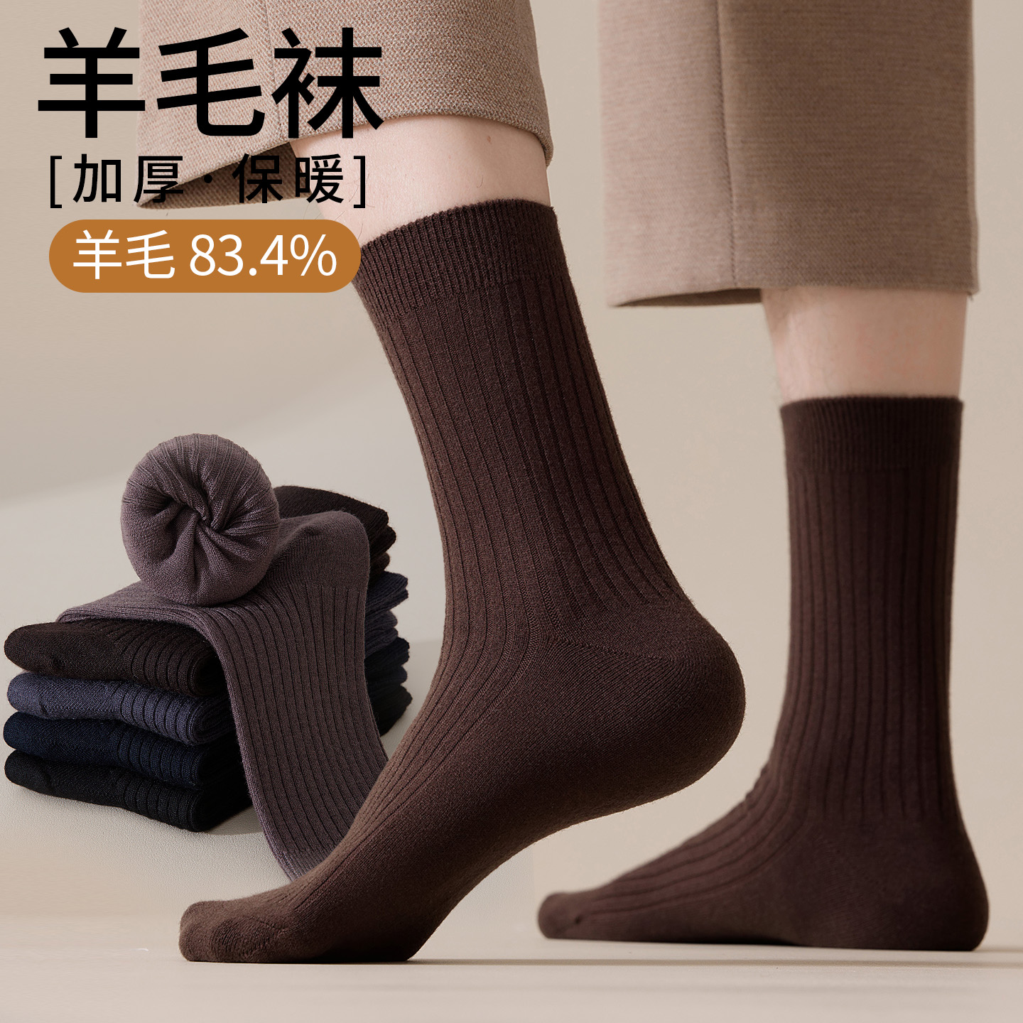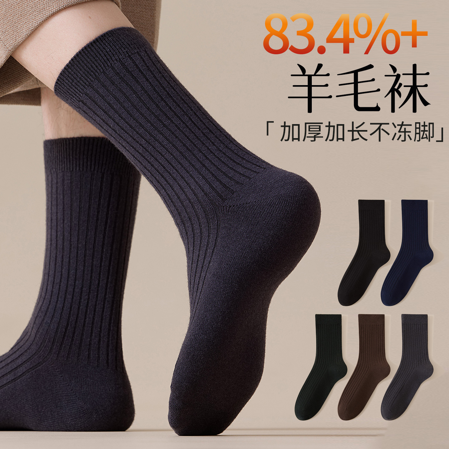 【多妈团购 袜子姑姑80%纯羊毛双针袜 男袜3双装】83.4%精选羊毛,商务男士秋冬必备!锁温蓄热 保暖干爽不闷脚!运动不磨泡竖螺纹弹力口--保暖不勒脚-远帆针织