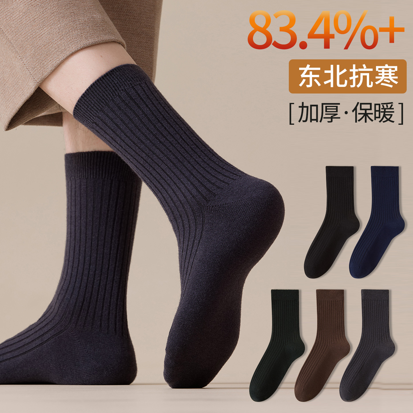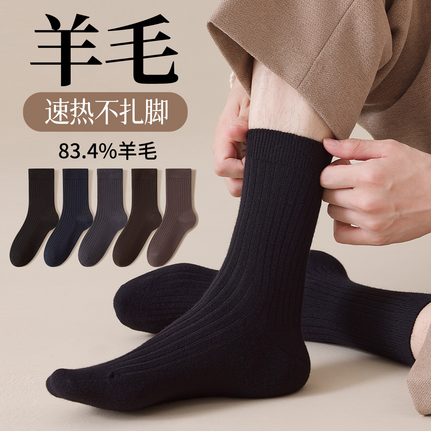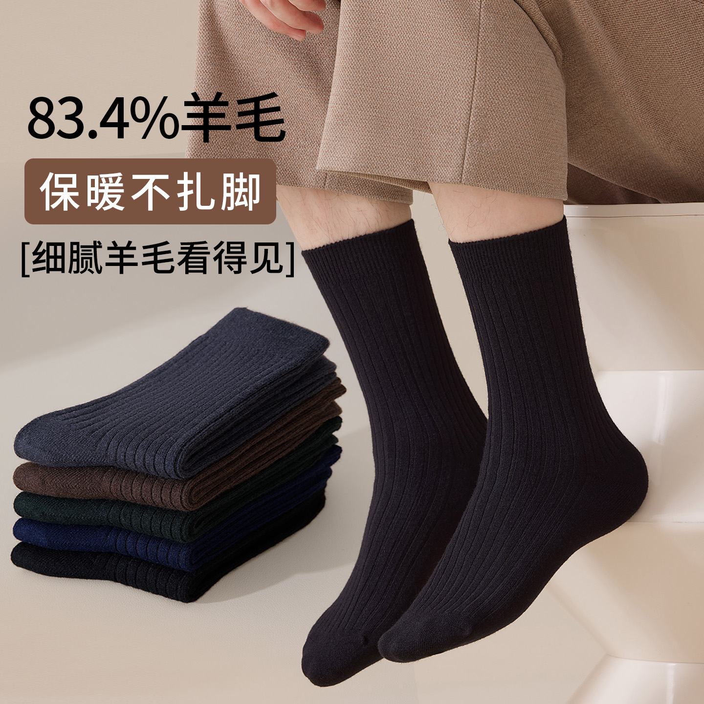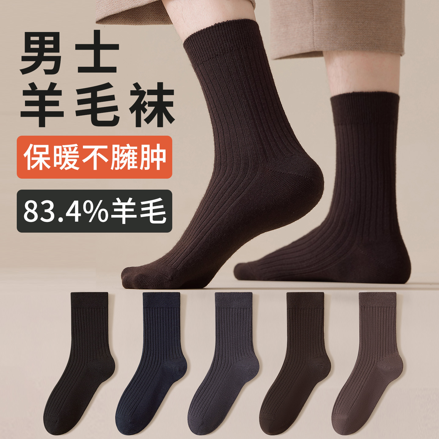 【多妈团购 袜子姑姑80%纯羊毛双针袜 男袜3双装】83.4%精选羊毛,商务男士秋冬必备!锁温蓄热 保暖干爽不闷脚!运动不磨泡竖螺纹弹力口--保暖不勒脚-远帆针织