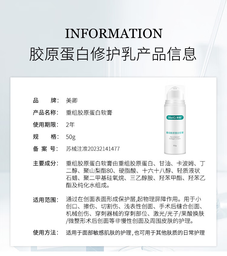 美卿 医用敷料重组胶原蛋白软膏50g 舒缓敏感创面保护无菌