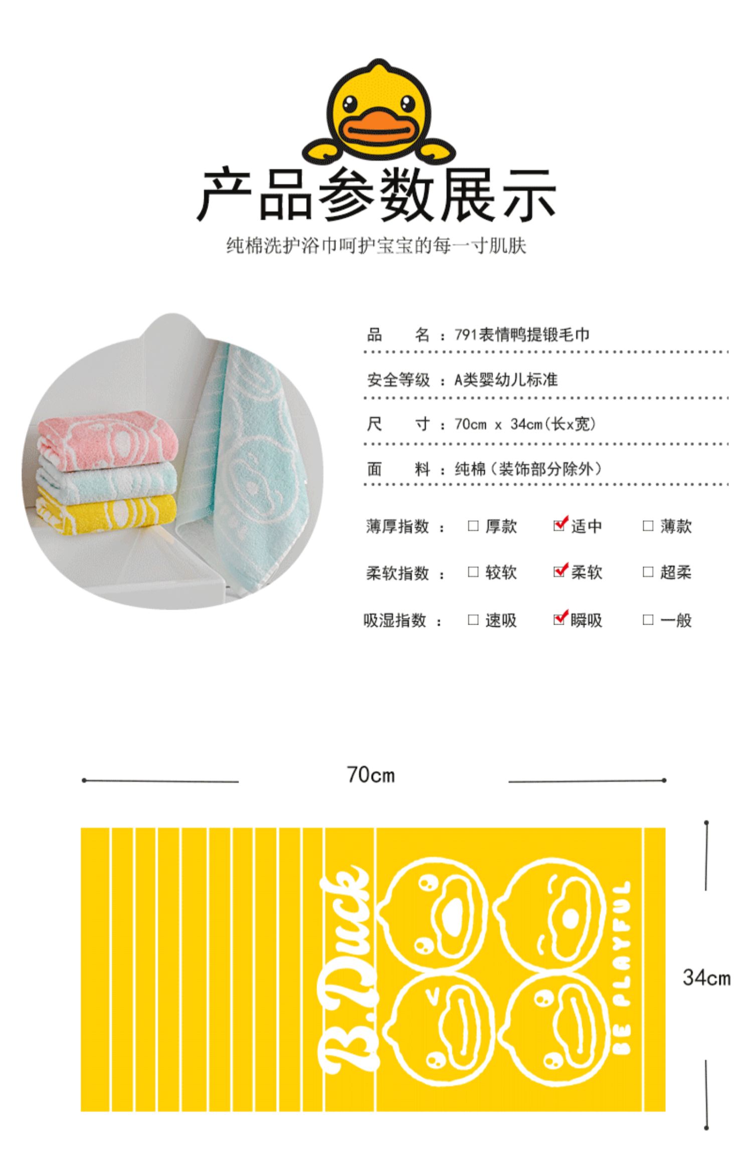 B.Duck小黄鸭表情鸭毛巾70*34cm 791
