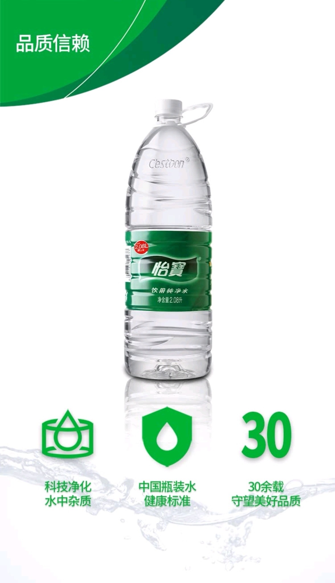 怡宝纯净水2.08L大瓶装家庭必备健康饮水