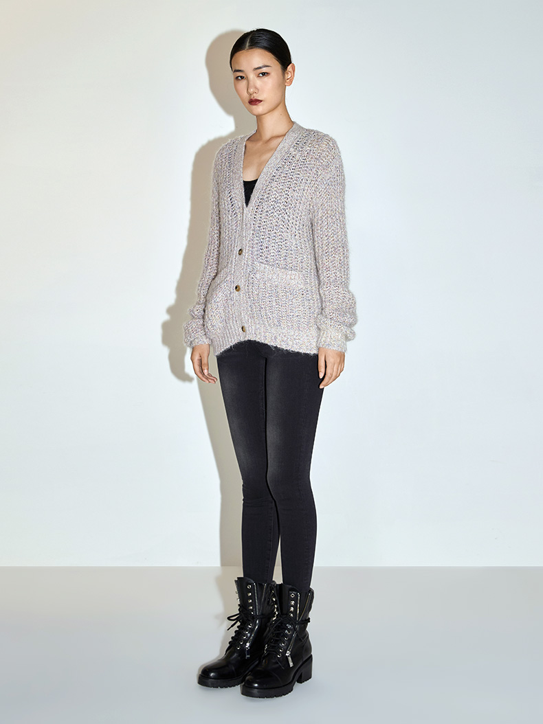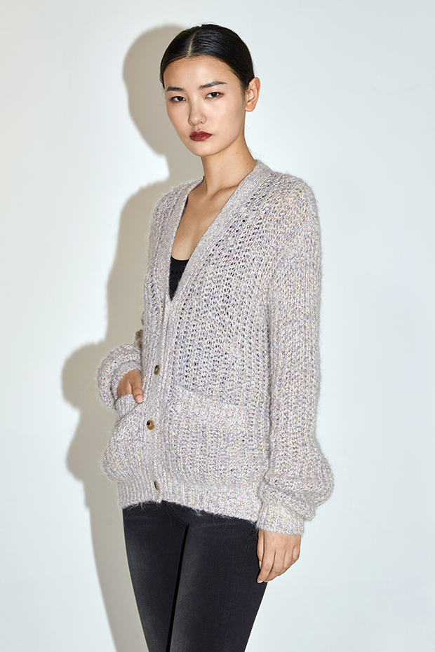 选用意大利进口纱线,加入羊驼毛羊毛多种成分混纺,面料纹理清晰,色泽丰富靓丽。