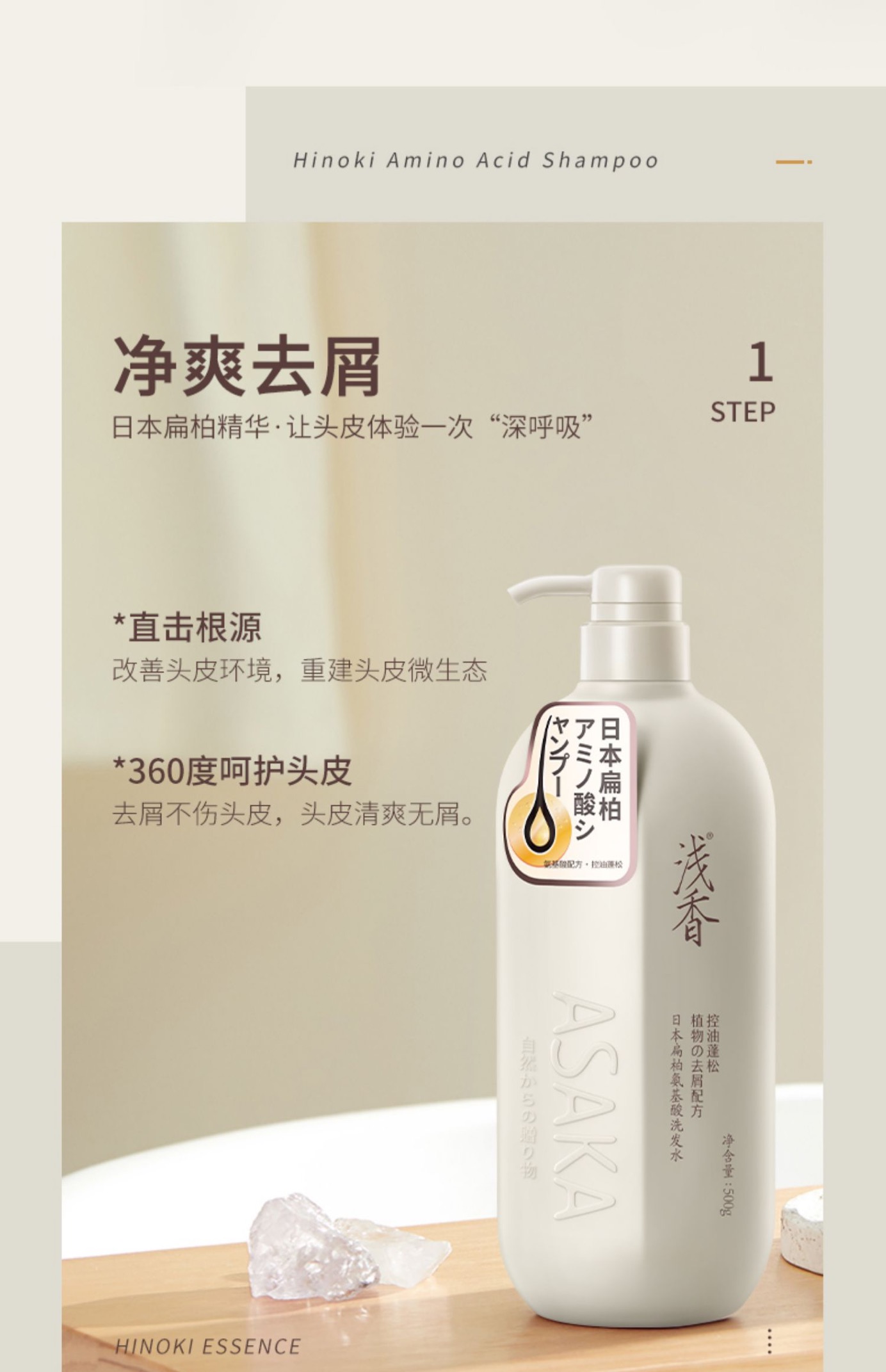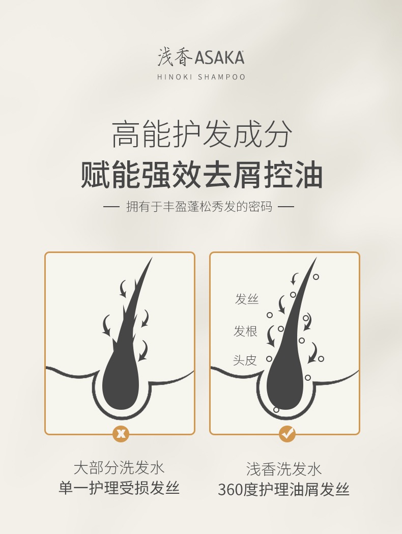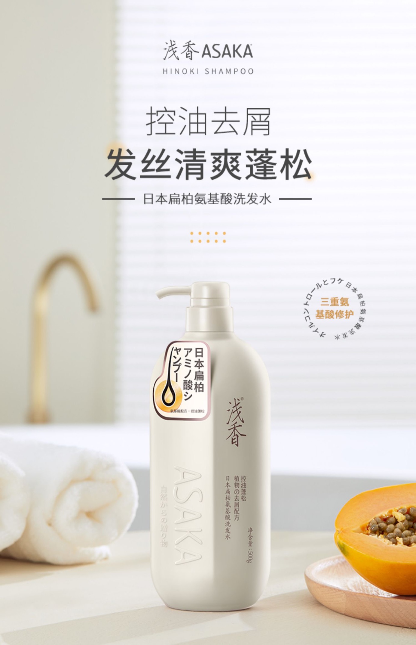 浅香日本扁柏氨基酸洗发水750g(控油蓬松)