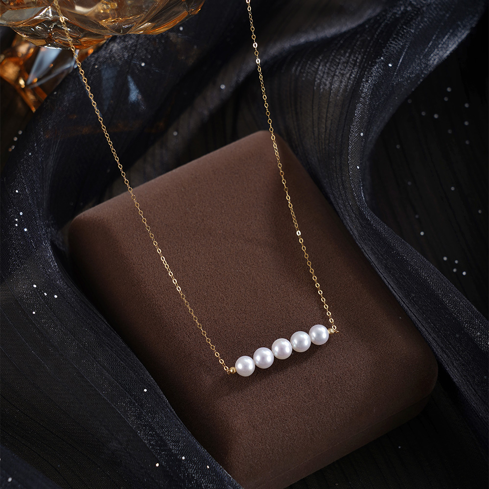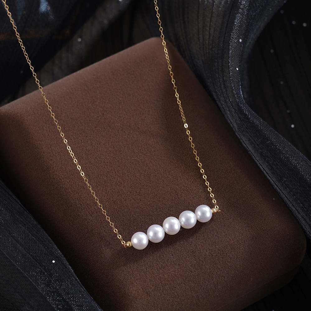 子佩集【云笺诗行】G18K珍珠惜王妃项链【MLKJXL002】5mm珠镀金多珠一字2601