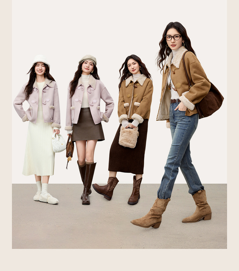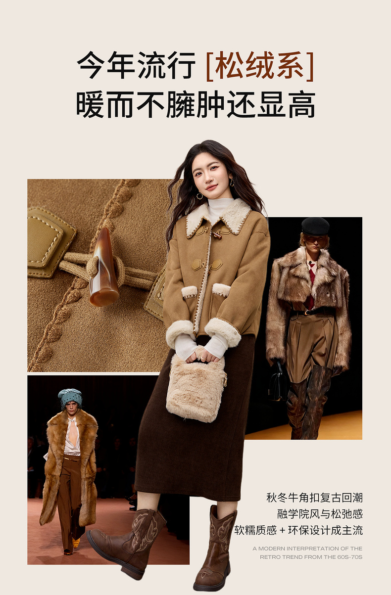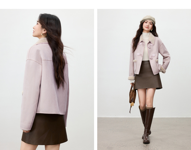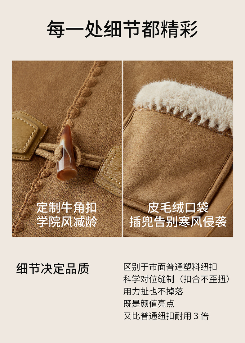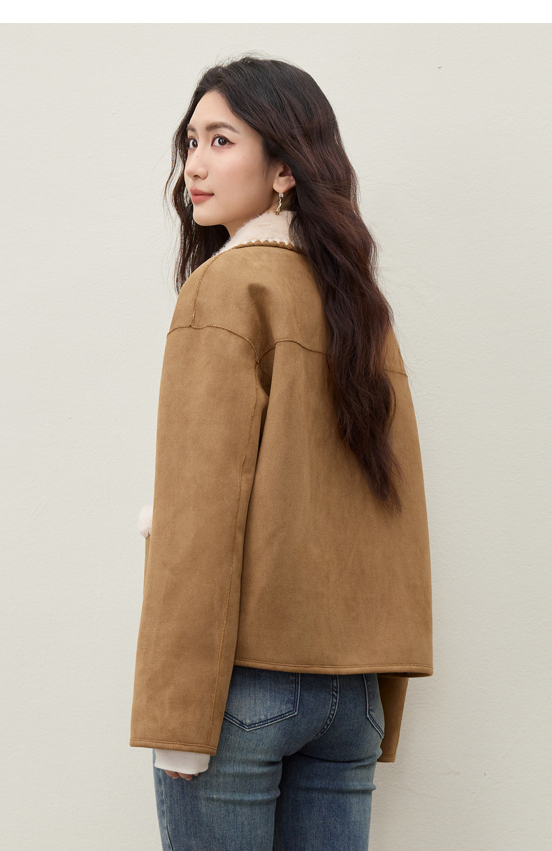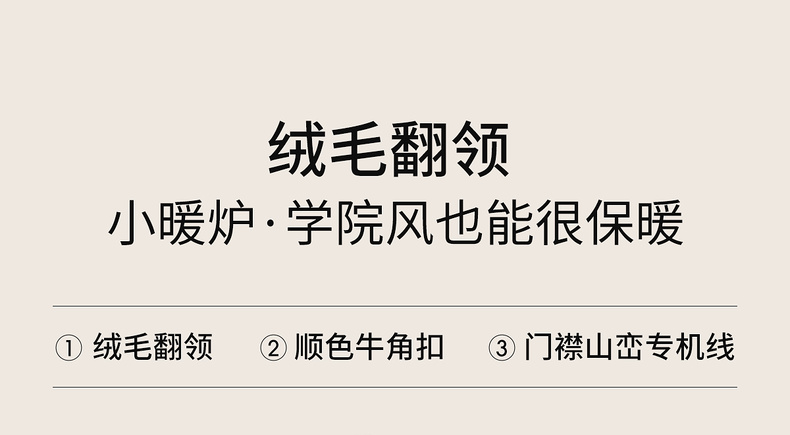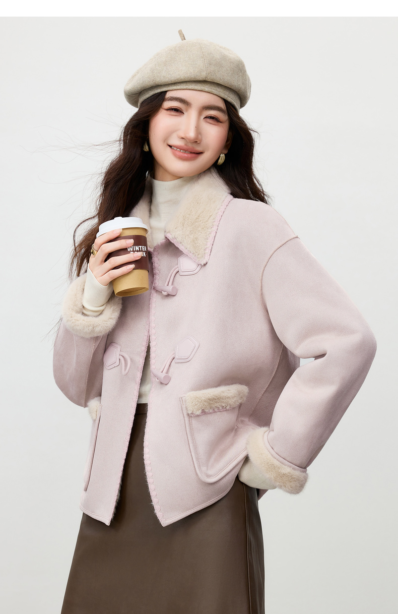 【内购】【皮毛绒保暖】学院风撞色翻领牛角扣山峦专机线宽松落肩显瘦外套-W54PA4095