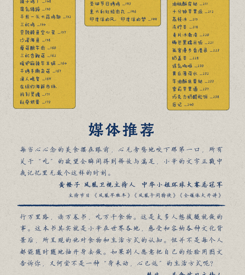 小辛的旅行厨房 辛振行 大小聚会教科书宴客菜下午茶时间 凉菜沙拉小食 19种秘制私房菜 85种美食10篇随笔 吃货随笔 美食探索书籍