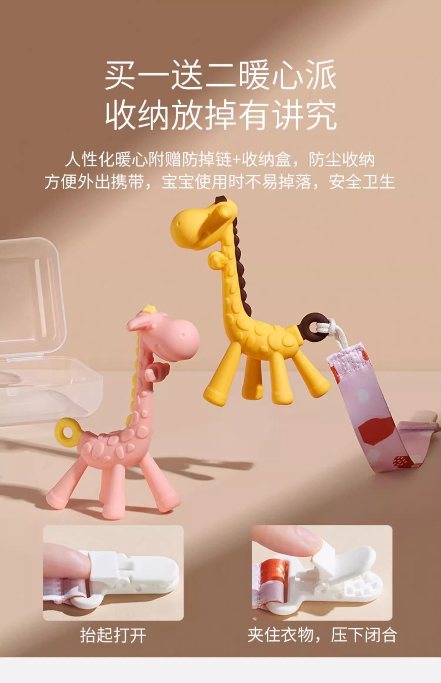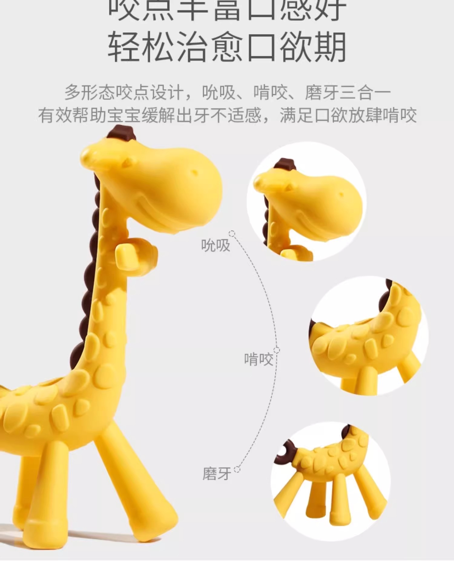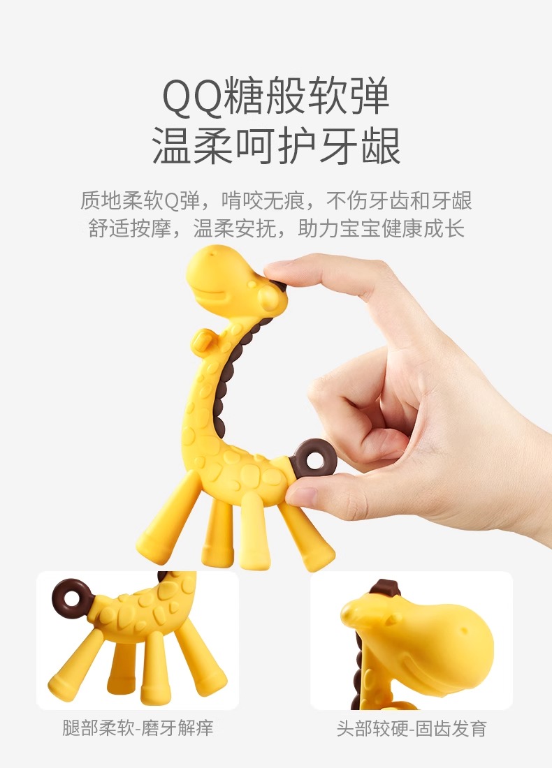 科巢牙胶长颈鹿磨牙棒婴儿防吃手神器宝宝硅胶牙咬胶玩具可水煮