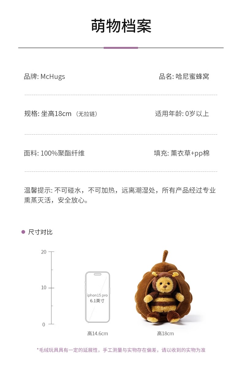 McHugs哈尼蜜蜂窝玩偶睡觉抱摆件毛绒玩具娃娃情侣生日礼物公仔