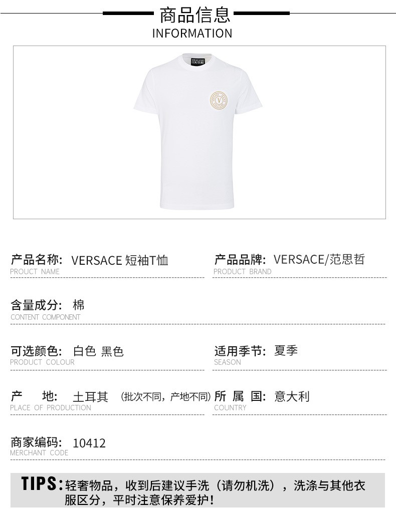 【超惠秒】范思哲VERSACE 男士全棉刺绣logo短袖T恤 10412