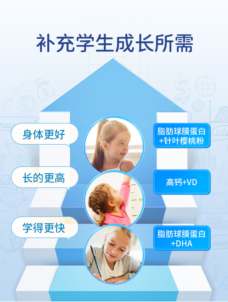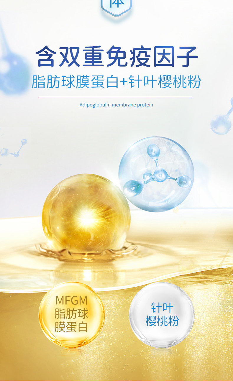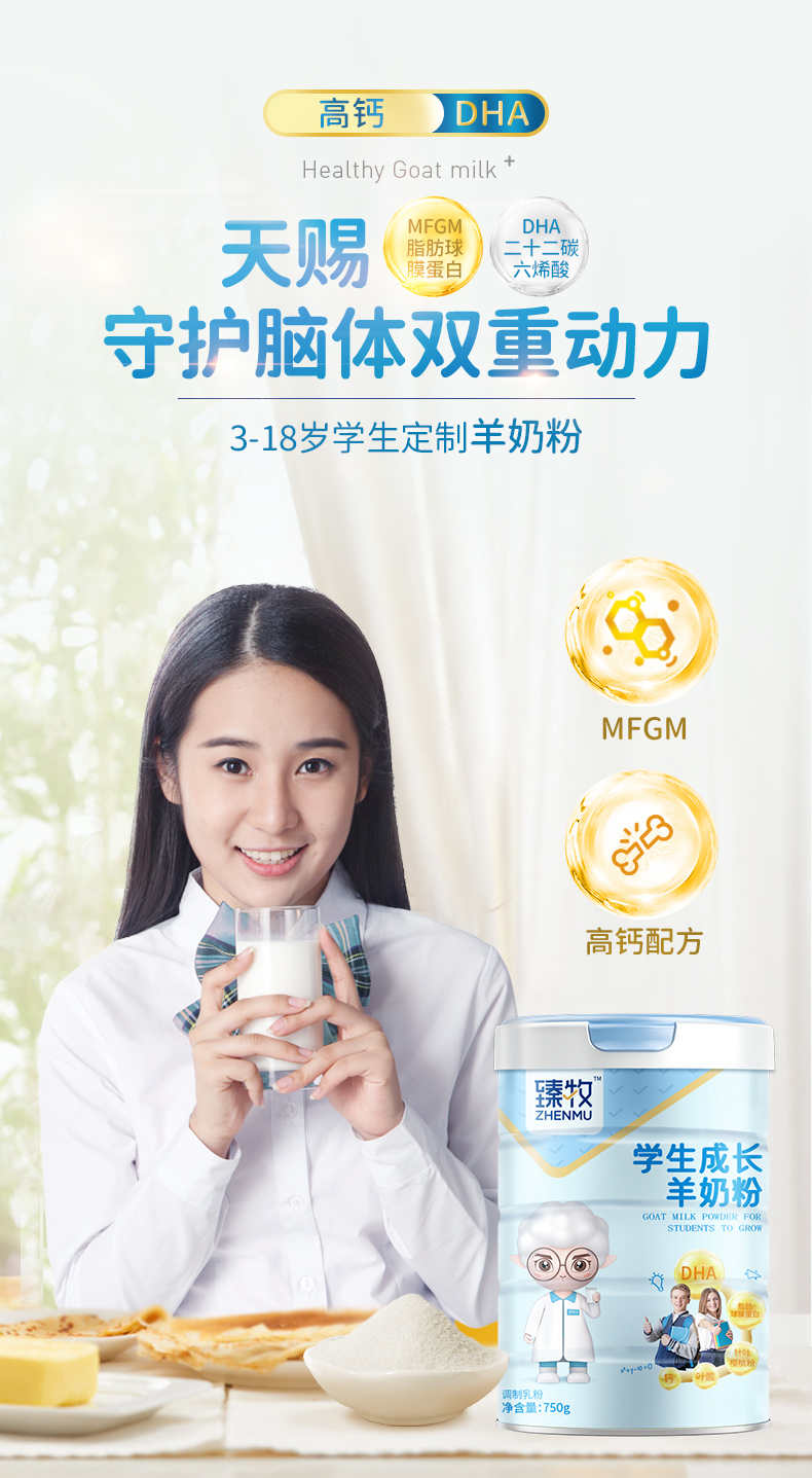 全脂羊乳粉+DHA、脂肪球膜蛋白、针叶樱桃粉、高钙;