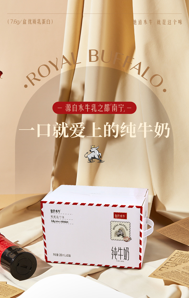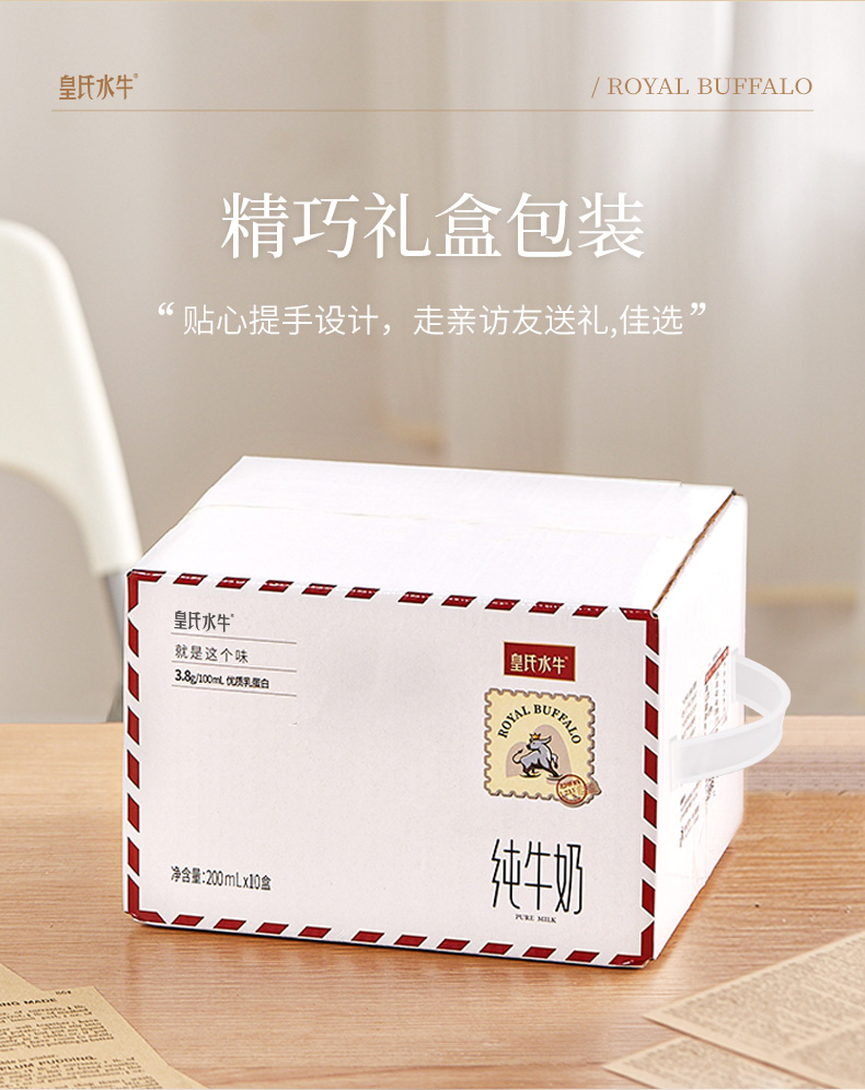皇氏水牛纯牛奶 添加水牛奶 学生儿童营养早餐奶 200ML*10盒*4箱 全脂纯牛奶手提装 送礼佳品【10月8日生产】