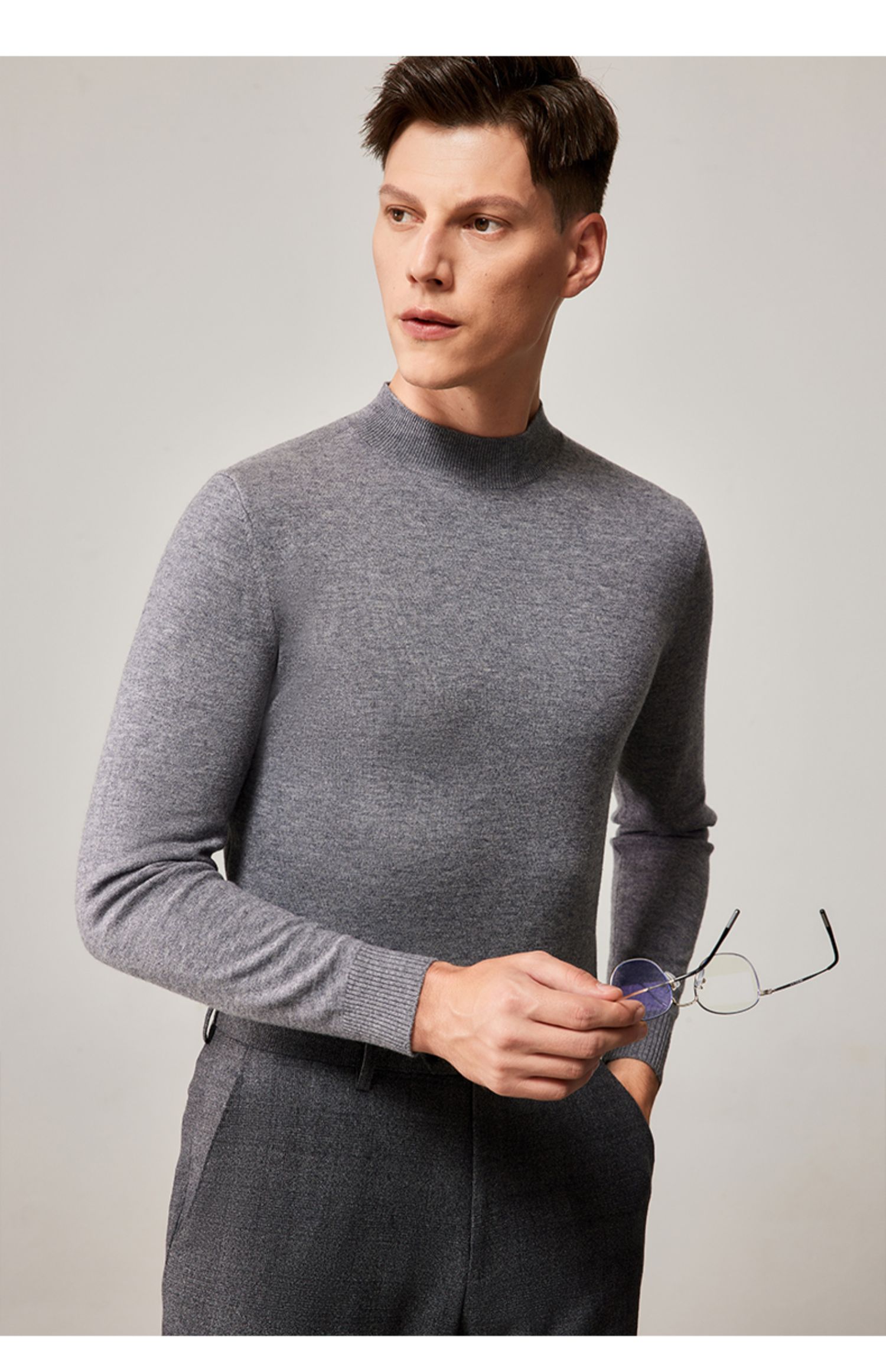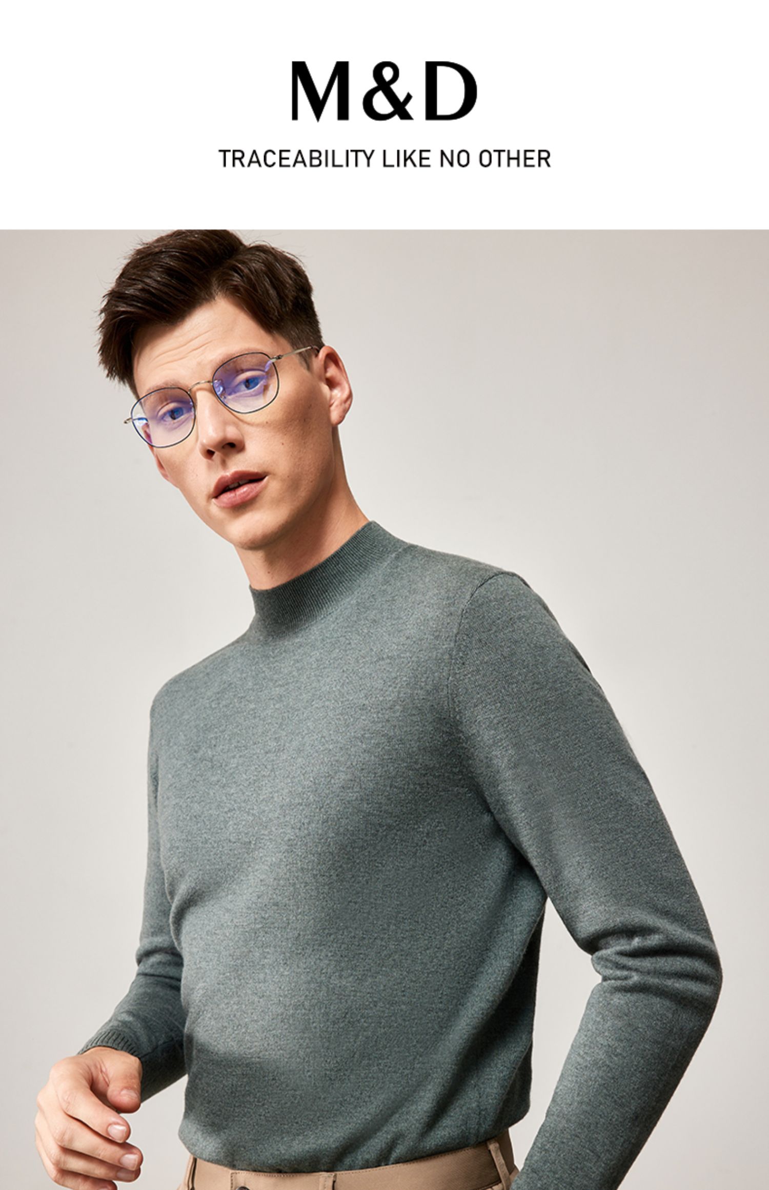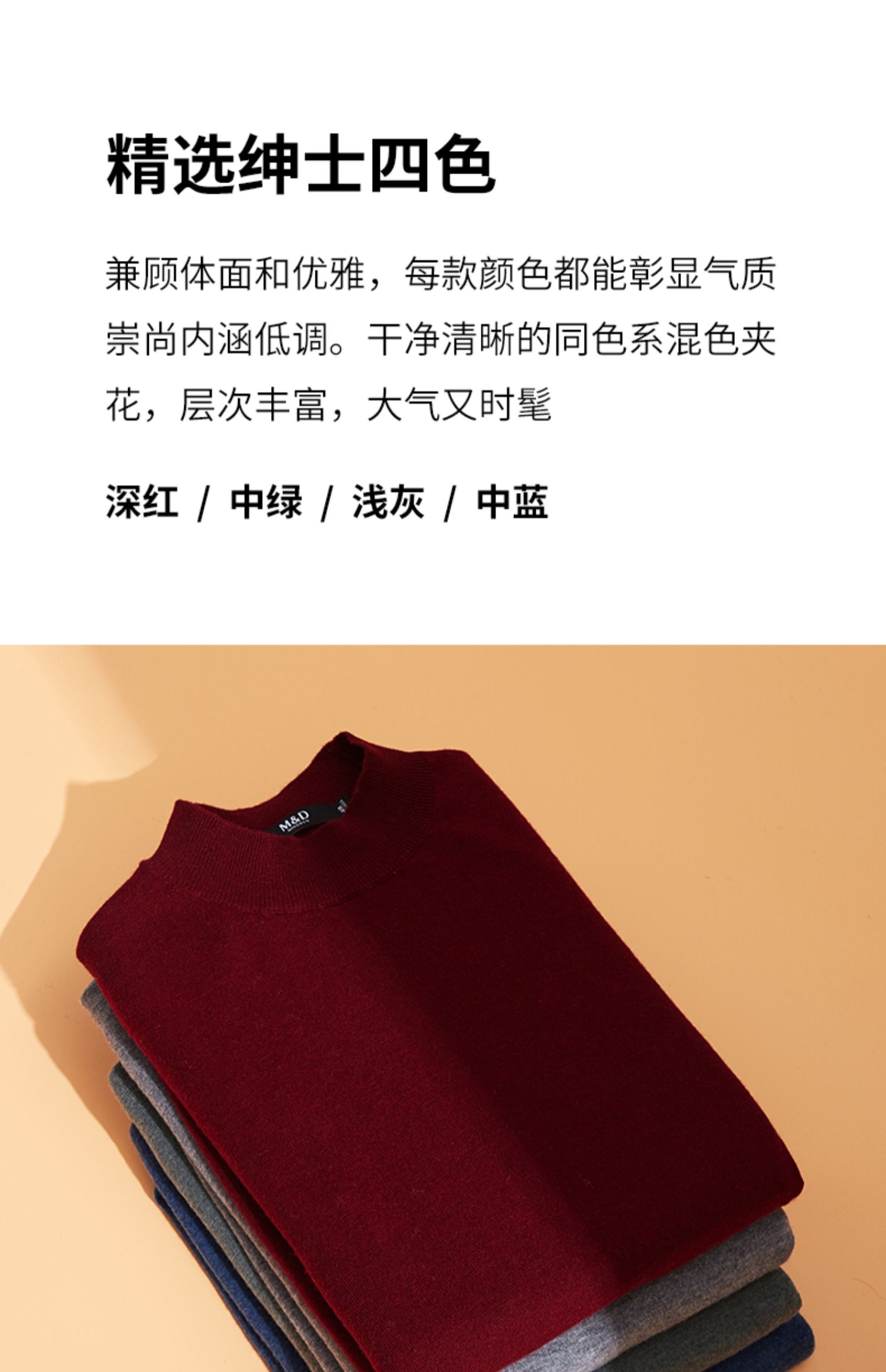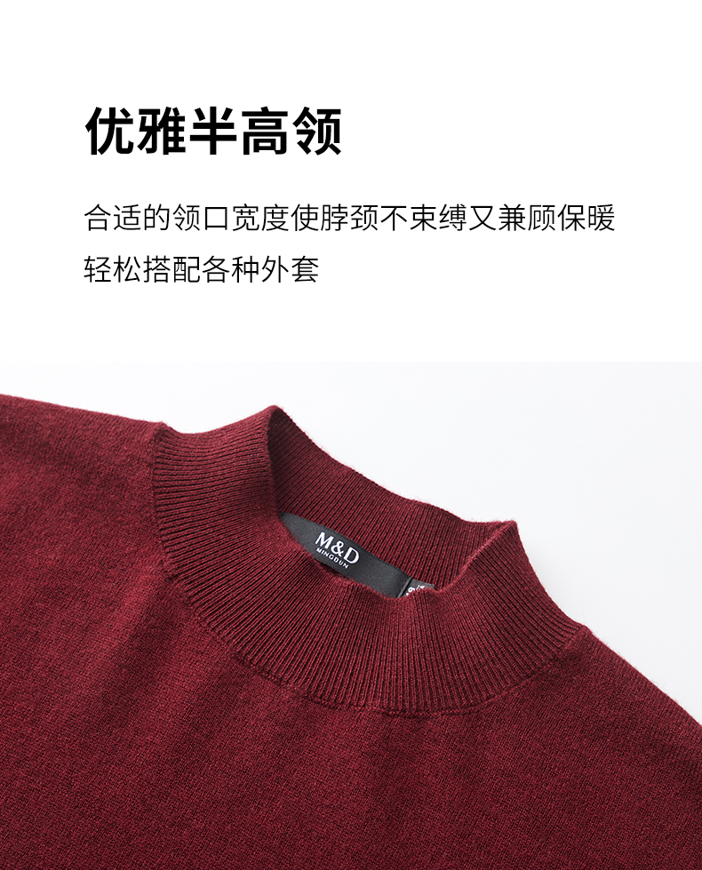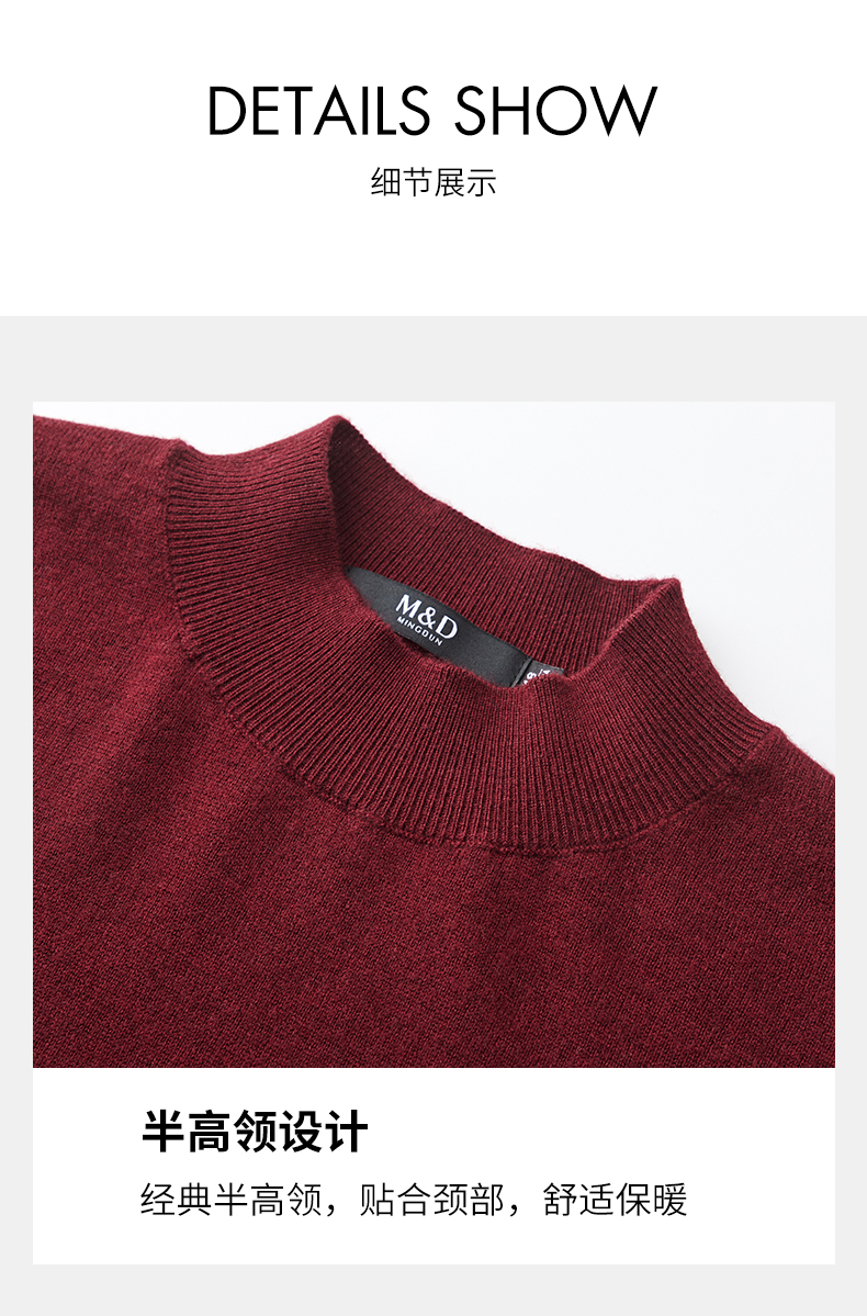 MD名盾纯色羊毛衫男圆领秋冬套头男士毛衣休闲针织衫加厚保暖