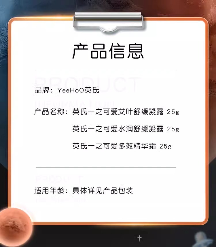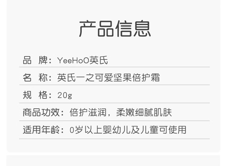 【限量秒杀】YeeHoO英氏一之可爱水润舒缓凝露&太空霜&坚果霜 宝宝面霜补水保湿滋润晒后救急