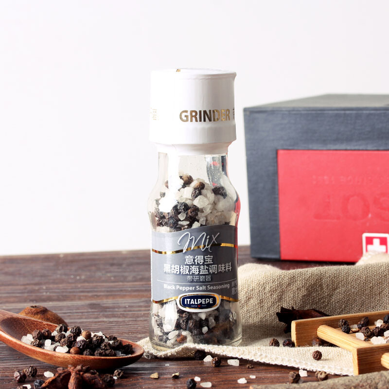意大利意得宝黑胡椒海盐调味料45g/煎扒海盐调味料50g 自带研磨器 中西风味随心享 033521/033522