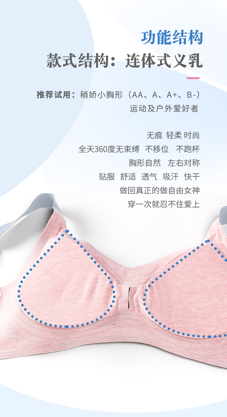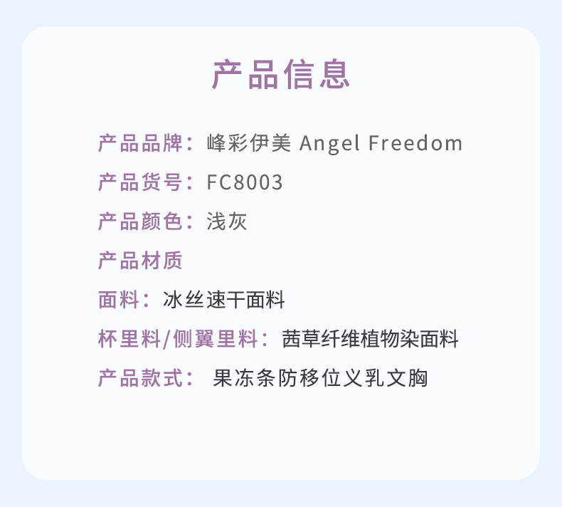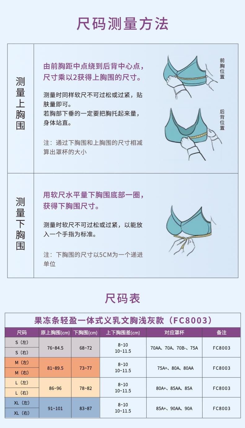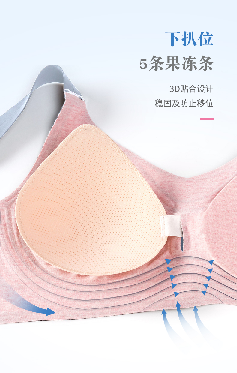【预售48小时后发货】峰彩伊美一体式义乳文胸果冻条乳腺术后防移位内衣适合AB杯FC8003(浅灰色)
