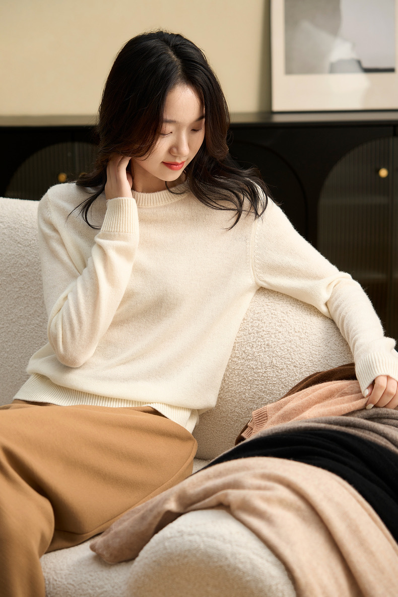 【百年难遇捡漏价!100%纯羊毛一线成衣圆领羊毛衫】抗起球 不变形 绒感细腻不扎 上身又轻又暖 百搭显瘦 高密编织 弹软而不勒