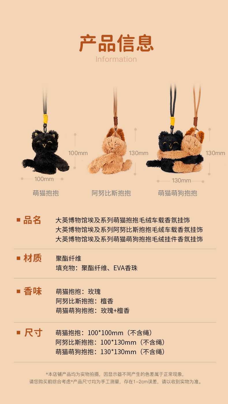 大英博物馆 埃及系列 萌猫抱抱 阿努比斯抱抱 萌猫萌狗抱抱 毛绒车载香氛挂饰