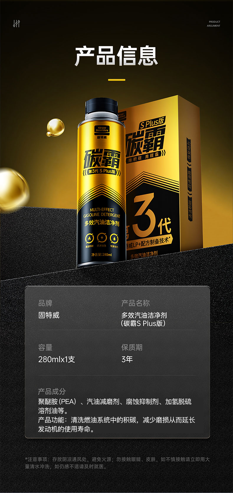 固特威碳霸splus版燃油宝除积碳清洗剂汽车发动机清洁汽油添加剂