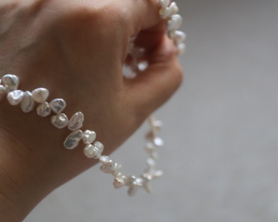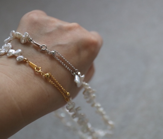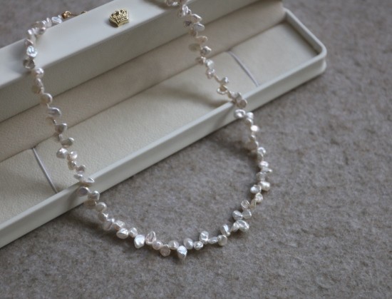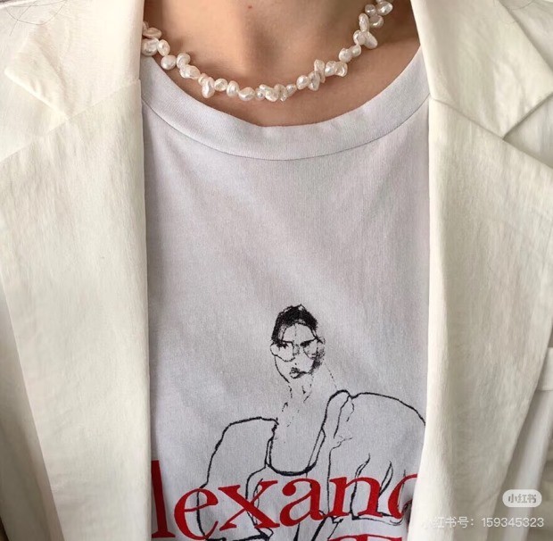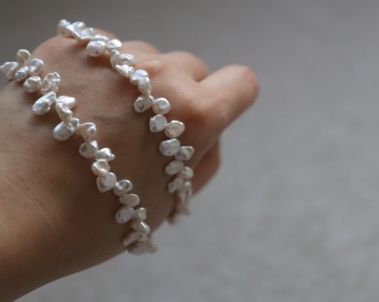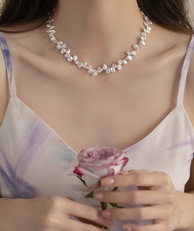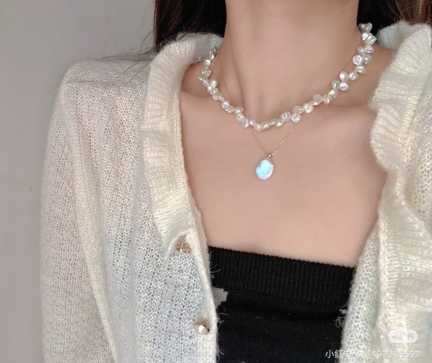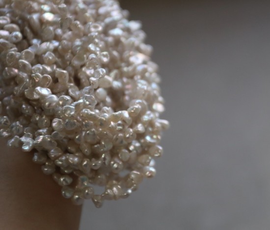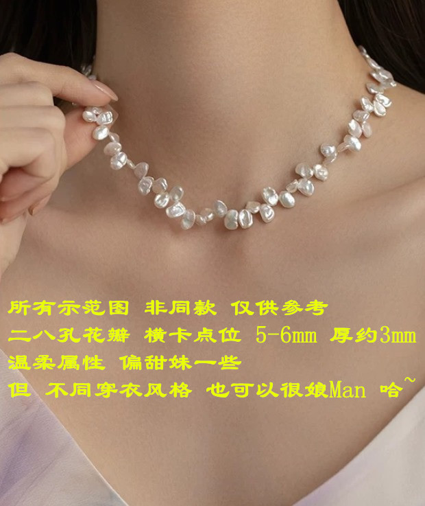 都是不规则的 珠光色 跟上款链接的米珠很类似 也属于暖白吧 没有冷光感