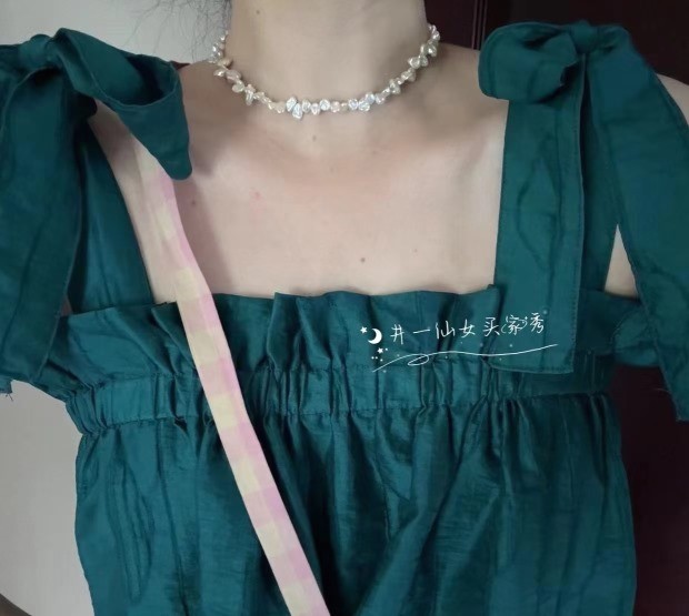 戴的时候 把珠珠调整一下 上下错开 我个人眼光 卡着脖戴 会更出效果