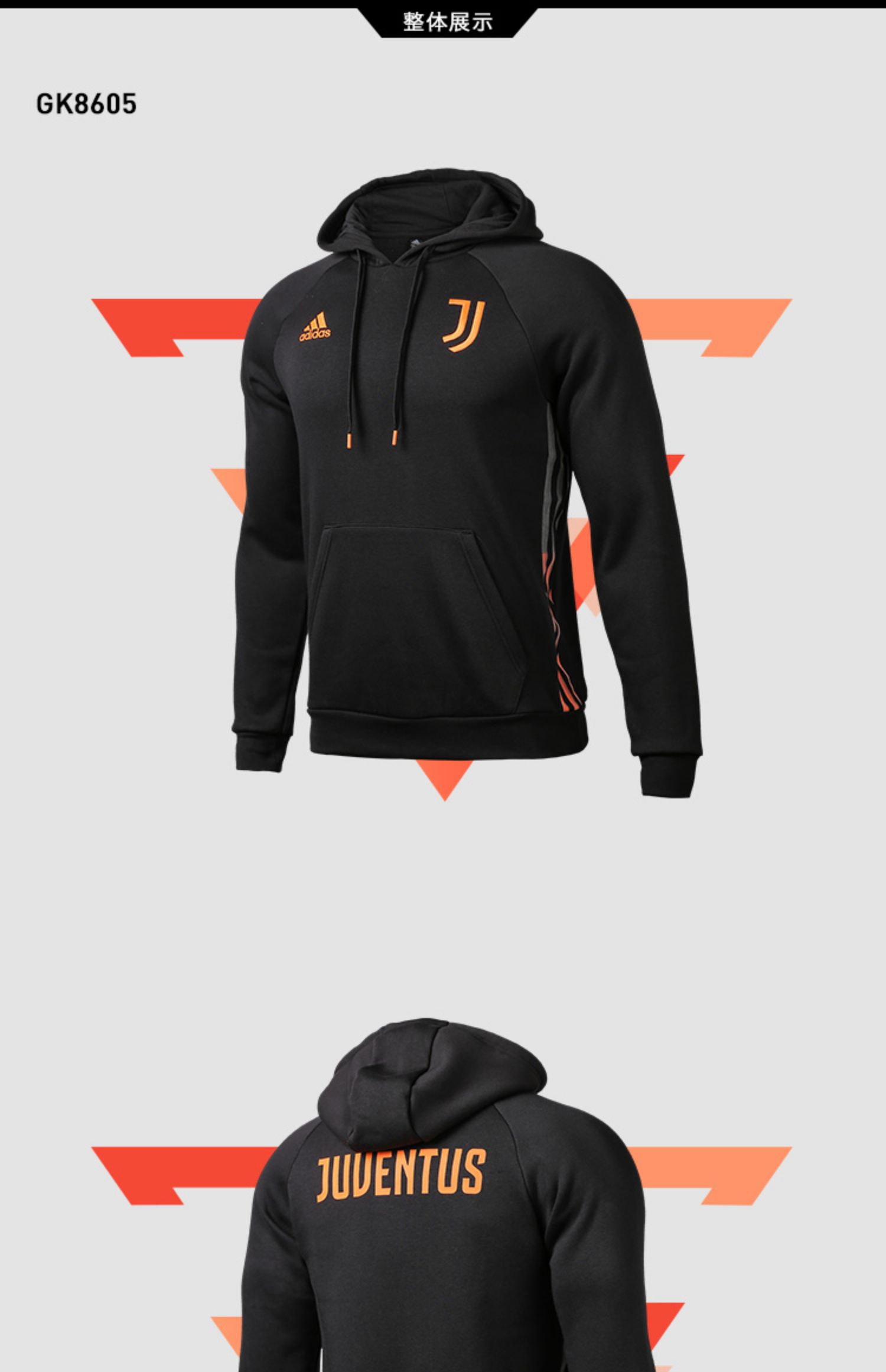 小李子专柜正品ADIDAS阿迪达斯尤文图斯连帽足球套头衫卫衣GK8605