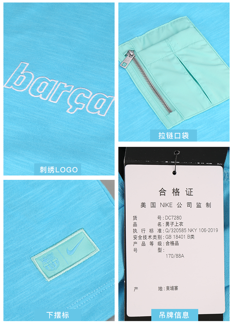 NIKE/耐克巴萨足球训练比赛T恤男子运动休闲短袖DC7280-425