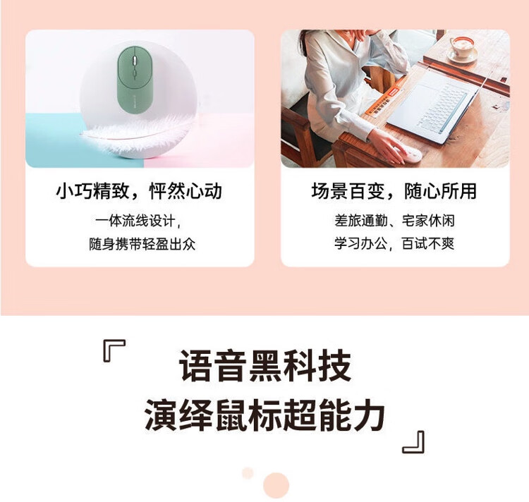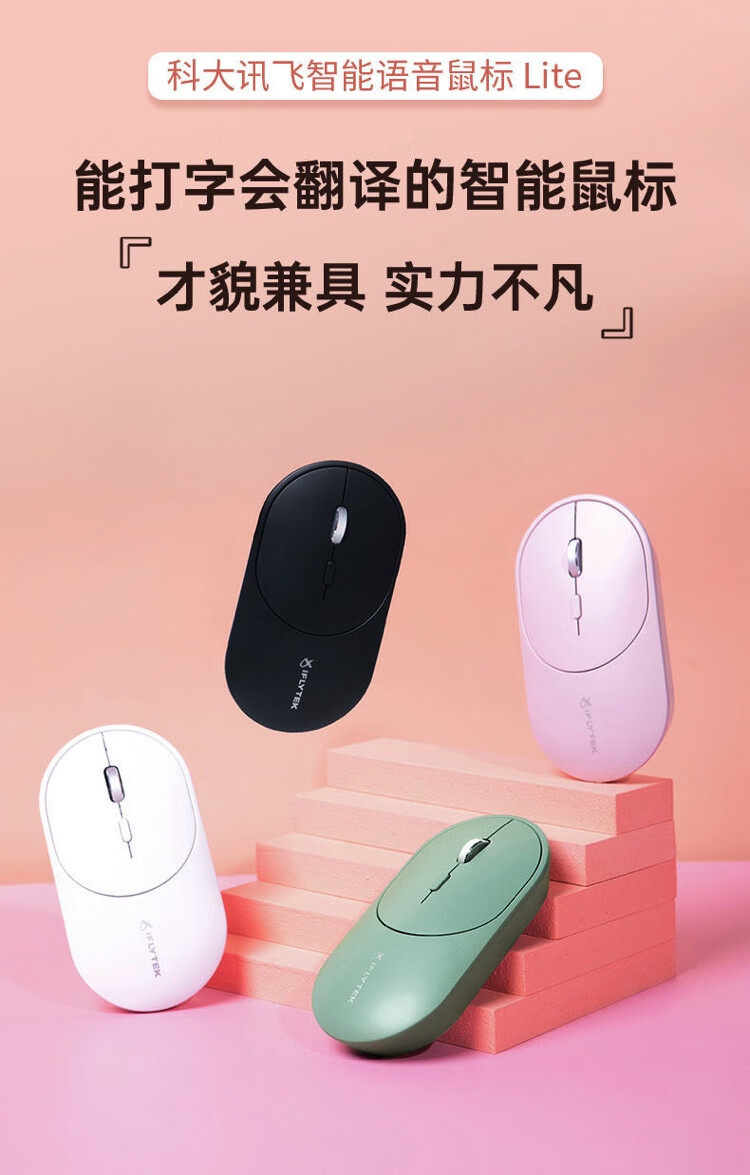 科大讯飞智能鼠标LiteM320 办公鼠标 无线外设 轻薄便携 多彩小巧 轻音按键 智能语音输入打字翻译 松霜绿