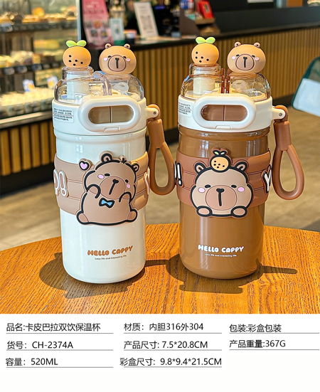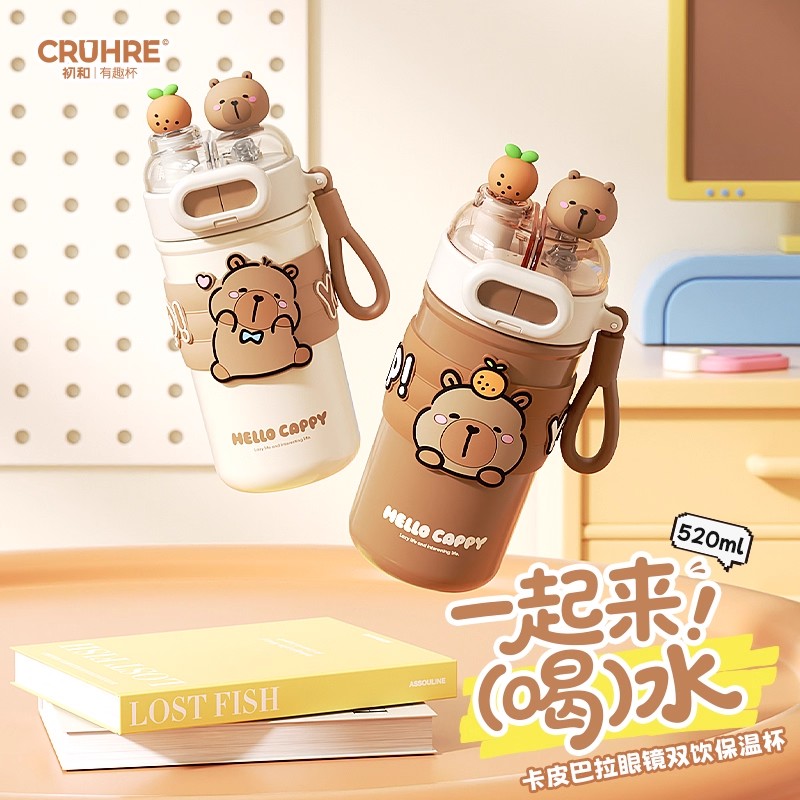 卡皮巴拉双饮保温杯520ml(两色均配随机)(250741)