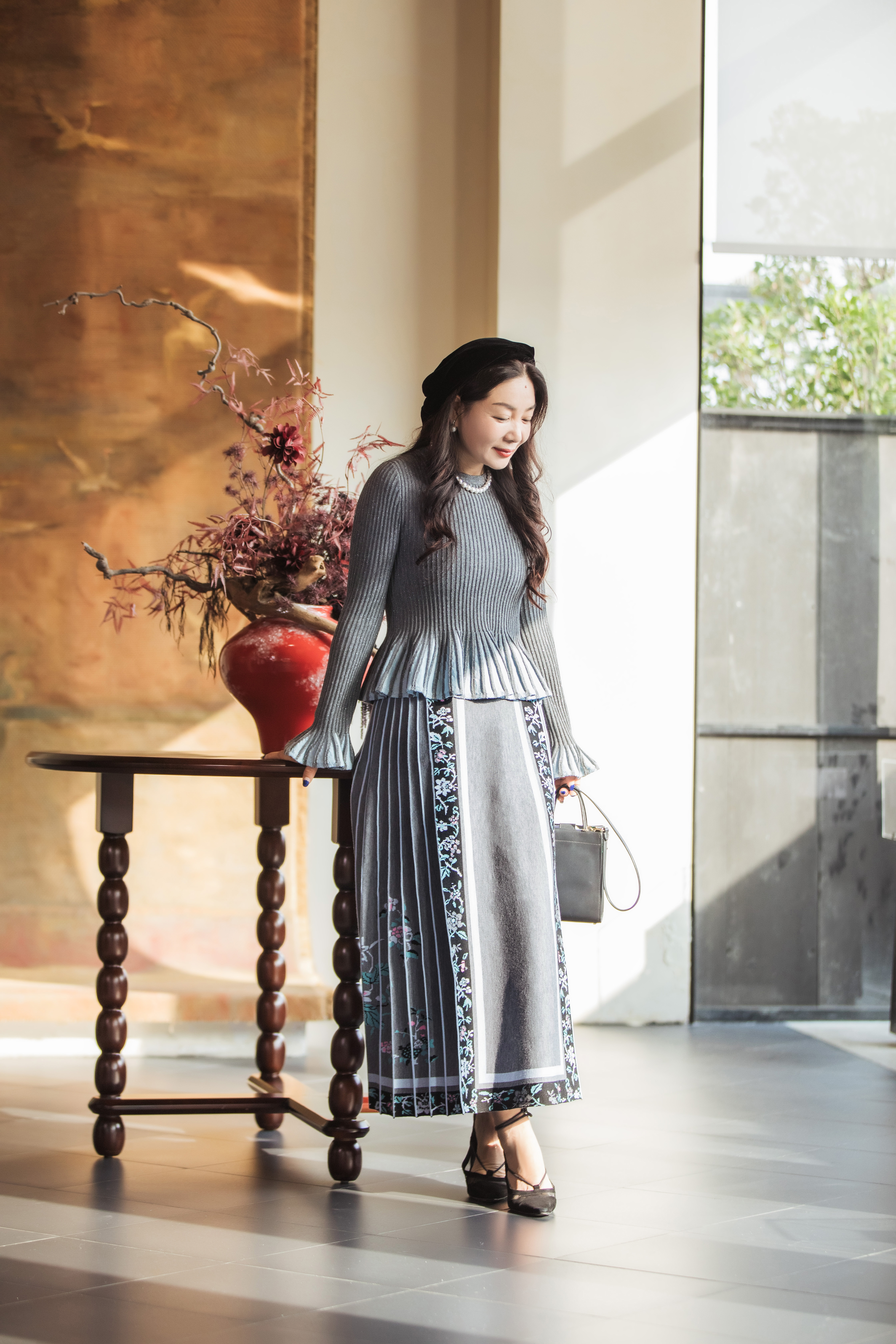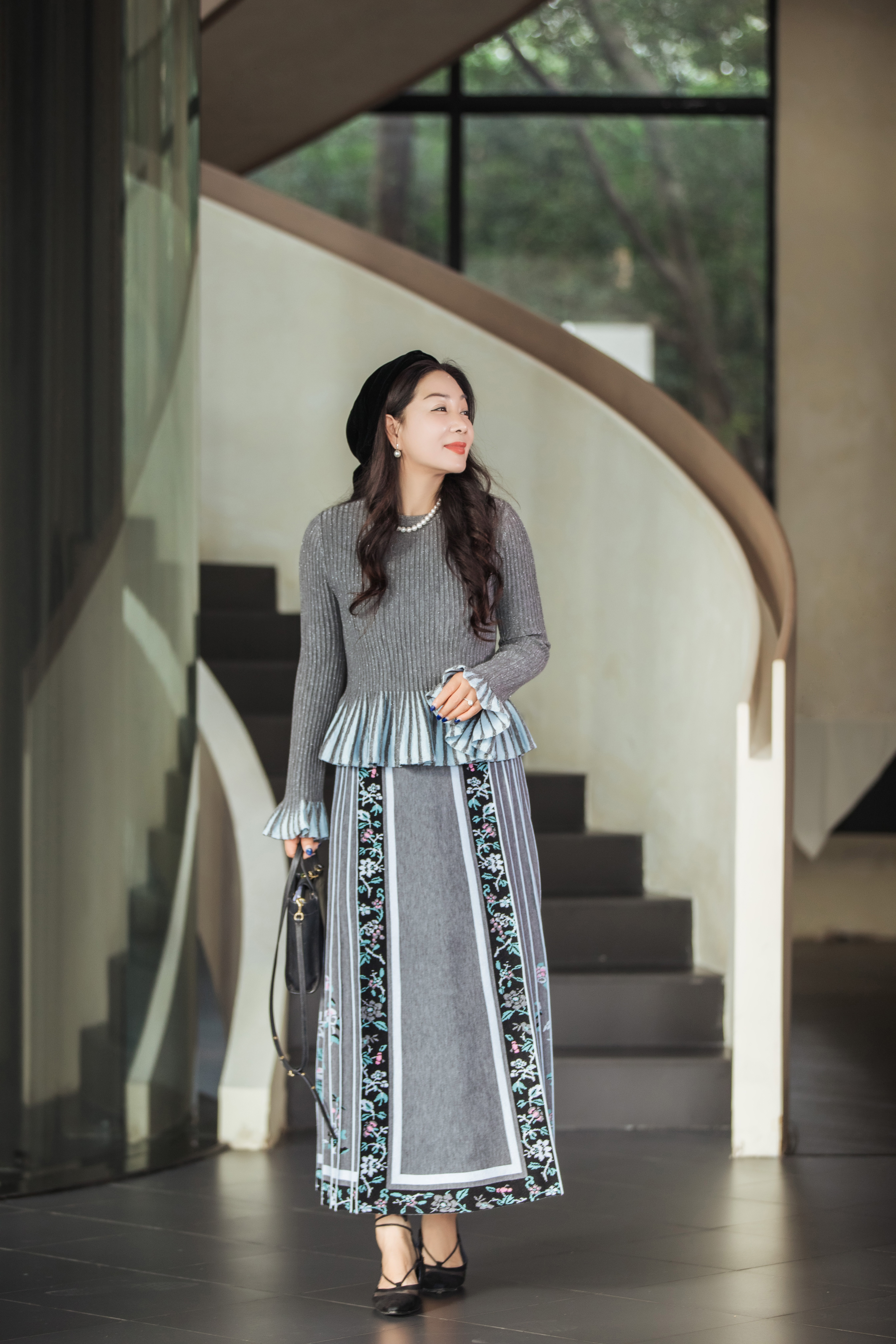 【林栖设计小店】(现货)绵羊毛毛织马面裙新中式2025秋冬新款暮云灰色半身裙1954116