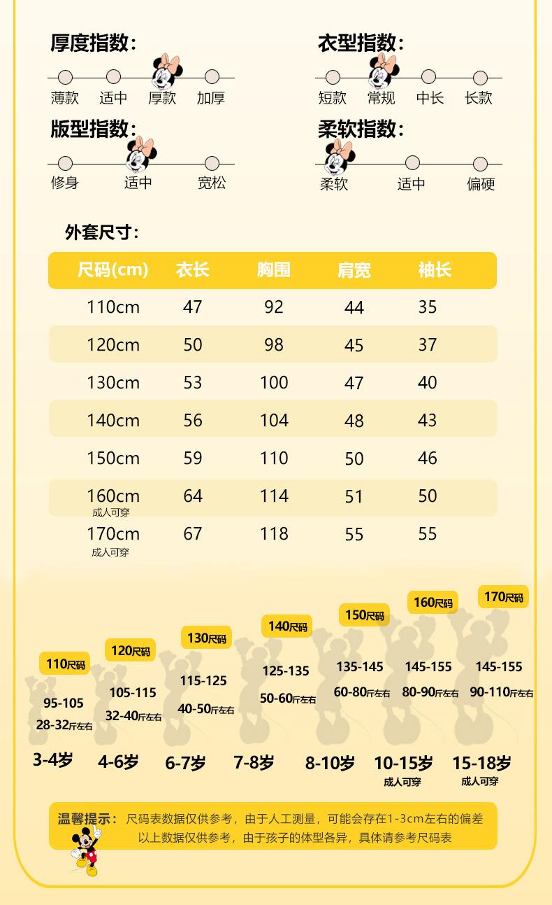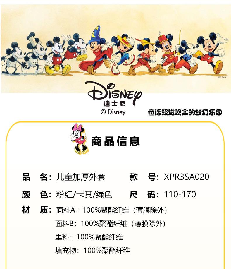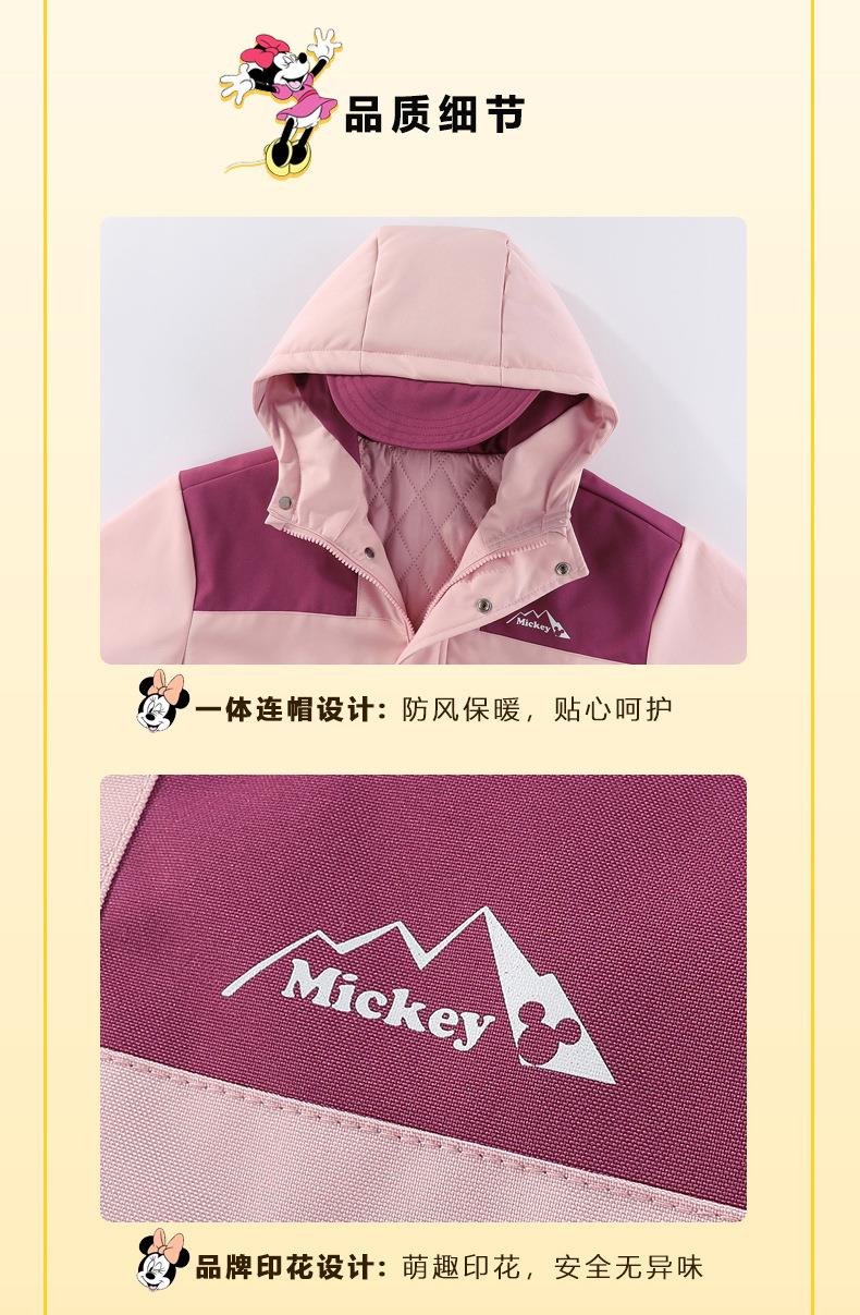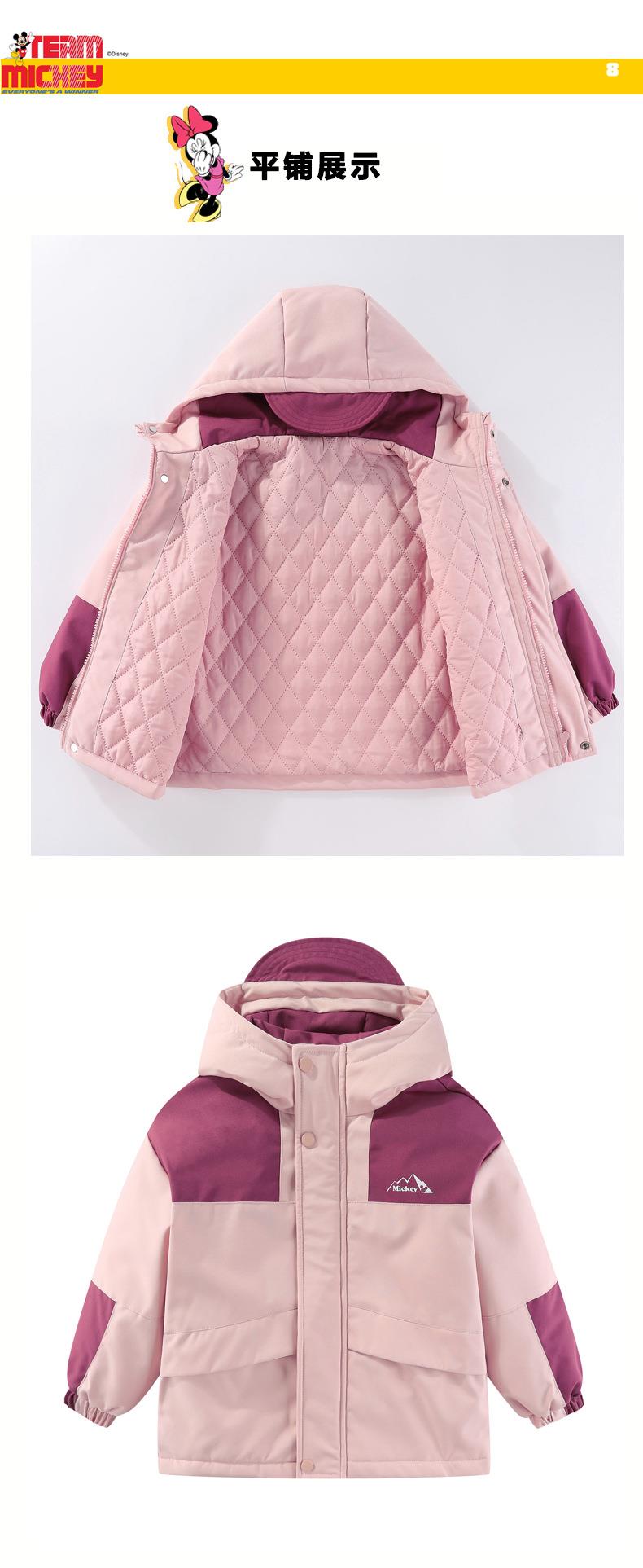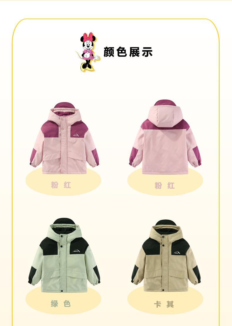 迪士尼儿童户外冲锋衣中大童亲子款加厚连帽夹棉外套三合一外套