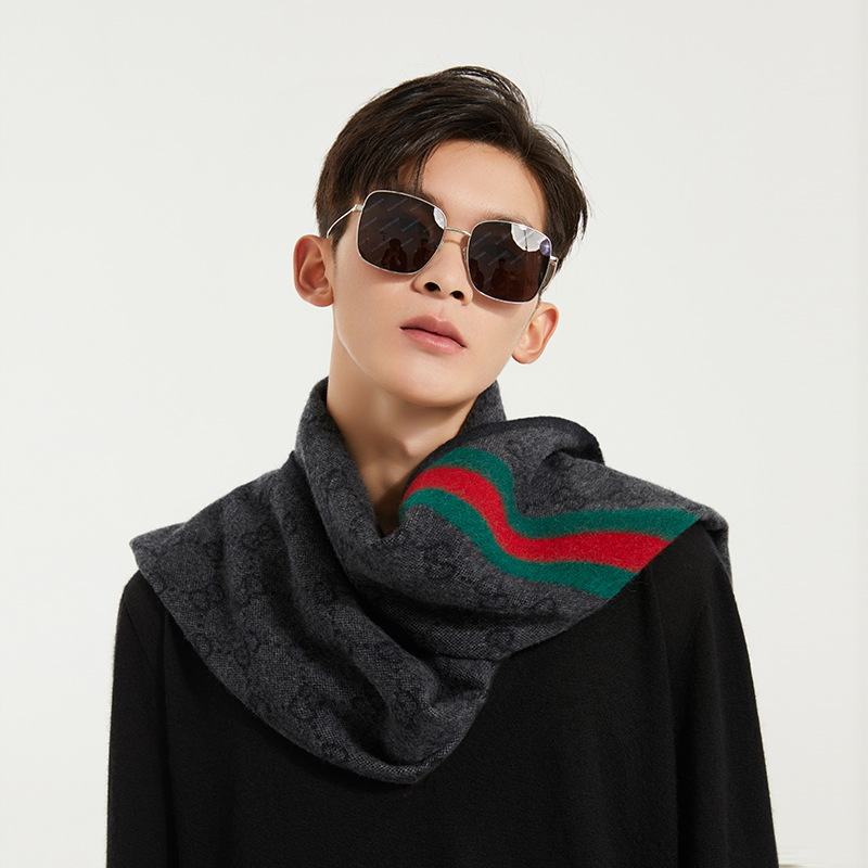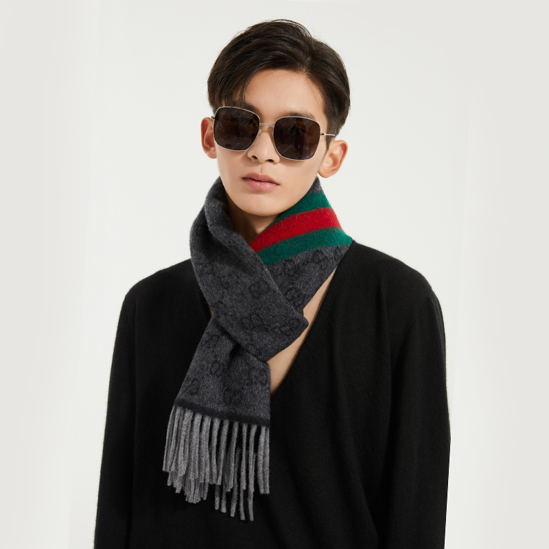 GUCCI 古驰 Gucci围巾 男女通用款羊毛双G时尚长款围巾 570603 3GB18 4068
